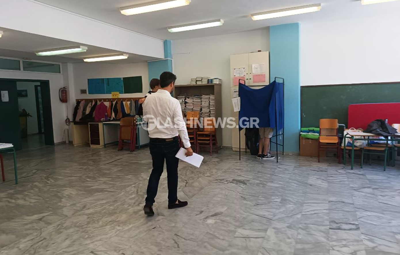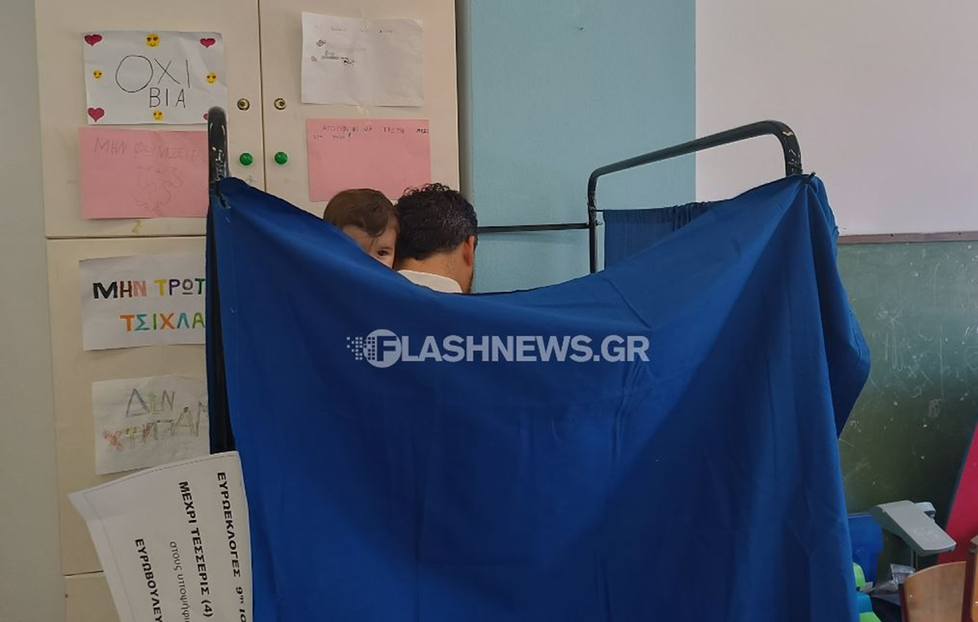 Ο μικρότερος σε ηλικία ψηφοφόρος έδειξε ιδιαίτερο ενδιαφέρον κατά την επιλογή των ψηφοδελτίων από τον δήμαρχο Χανίων μέσα στο παραβάν και αμέσως μετά βοήθησε στο να πέσει στην κάλπη ο φάκελος με το ψηφοδέλτιο.