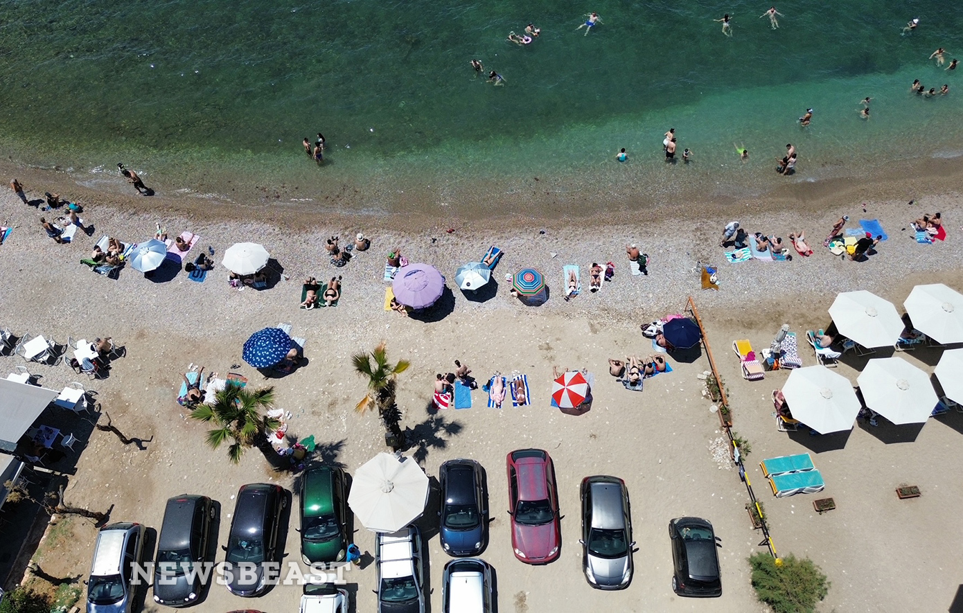 Προσπαθώντας να βρουν σκιά και να δροσιστούν οι πολίτες έχουν γεμίσει τις παραλίες από νωρίς το πρωί της Κυριακής 9/6, με αποτέλεσμα όσο οι ώρες περνούν να μην πέφτει καρφίτσα.