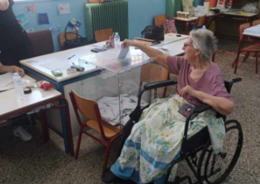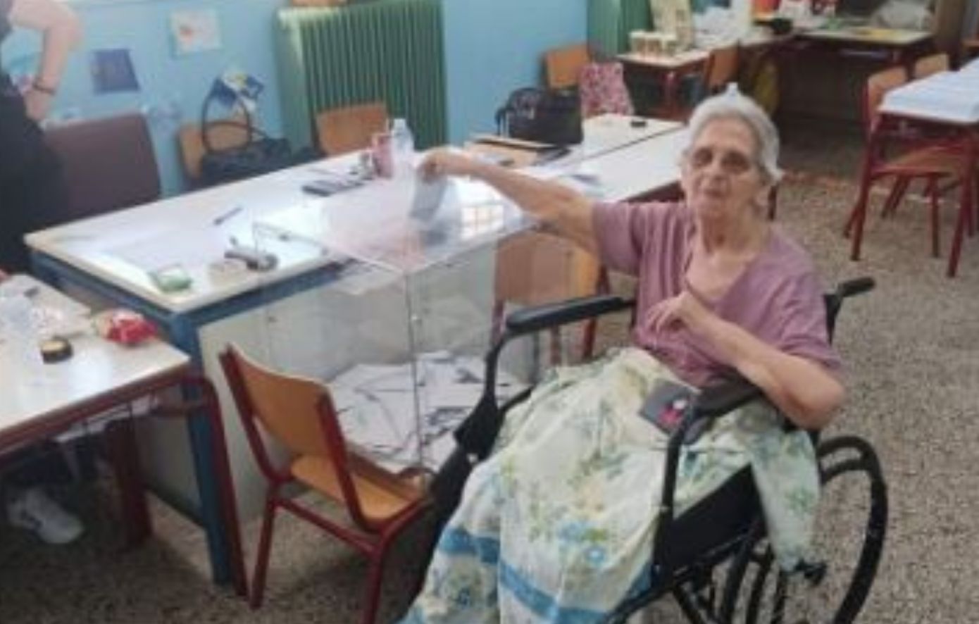 Σύμφωνα με το gegonota.news η 84χρονη ψήφισε στο 10ο δημοτικό σχολείο Βόλου, συνοδευόμενη από μέλη της οικογένειάς της και δεν την πτόησε η δυσκολία στην μετακίνησή της ούτε οι υψηλές θερμοκρασίες που επικρατούν στον Βόλο.
