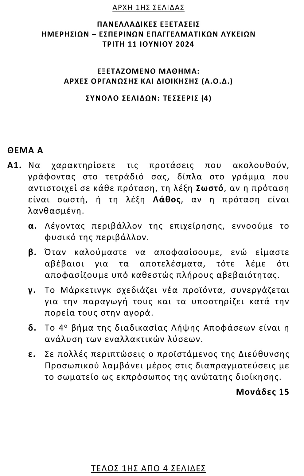 Δείτε τα θέματα του μαθήματος ΑΡΧΕΣ ΟΡΓΑΝΩΣΗΣ ΚΑΙ ΔΙΟΙΚΗΣΗΣ (ΑΟΔ)