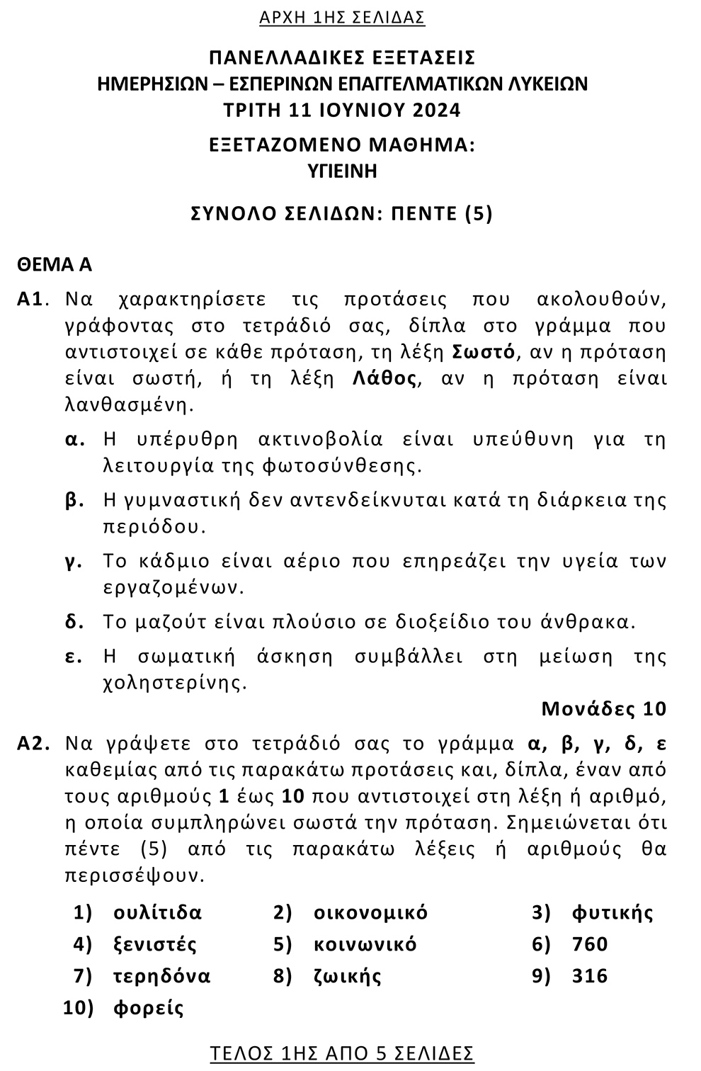 Δείτε τα θέματα του μαθήματος ΥΓΙΕΙΝΗ