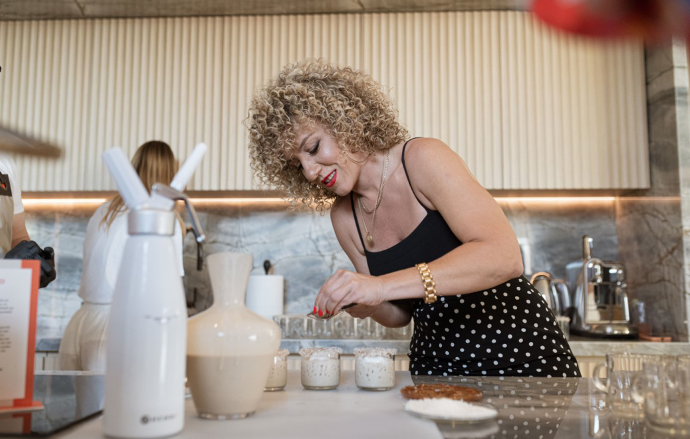 Σε ένα άκρως μεσογειακό σκηνικό με χρώμα και μουσική, οι εκλεκτοί καλεσμένοι είχαν την ευκαιρία να δοκιμάσουν μοναδικές κρύες συνταγές καφέ Nespresso δίπλα στη θάλασσα, με αποκορύφωμα το δροσιστικό coffee cocktail που έφτιαξε απόκλειστικά για τη Nespresso η βραβευμένη chef Γεωργιάννα Χιλιαδάκη εμπνευσμένη από τον αγαπημένο της καφε Ice Leggero της Nespresso.