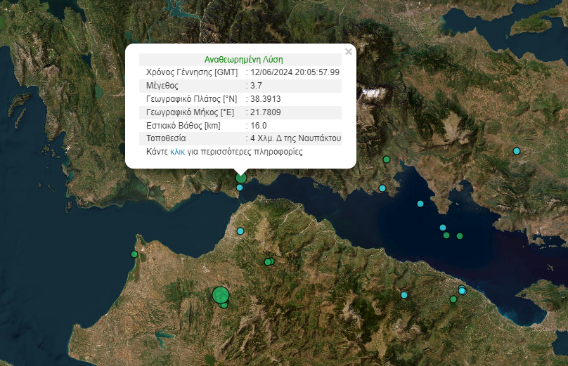 Σεισμική δόνηση 3,7 Ρίχτερ έγινε αισθητή, περίπου στις 23:05 το βράδυ της Τετάρτης, σε περιοχές της Αχαΐας και της Αιτωλοακαρνανίας.