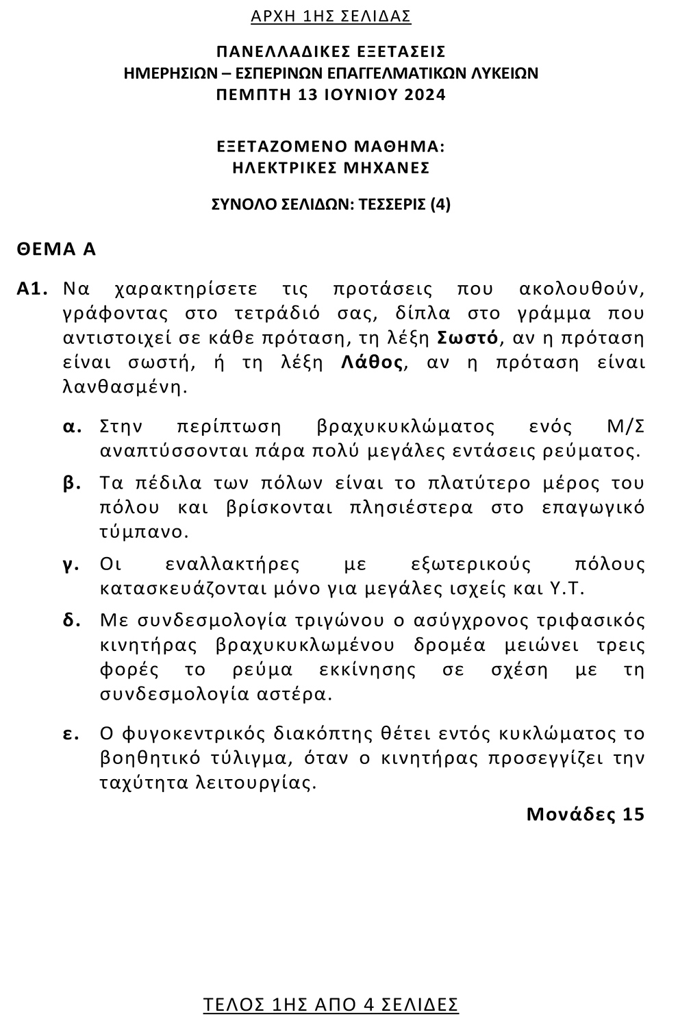 Πανελλαδικές και σήμερα, Πέμπτη 13 Ιουνίου 2024 για χιλιάδες υποψήφιους των ΕΠΑΛ, οι οποίοi εξετάστηκαν στα εξής μαθήματα: Ηλεκτρικές Μηχανές, Σύγχρονες Γεωργικές Επιχειρήσεις, Ναυσιπλοΐα ΙΙ, Ναυτικές Μηχανές.