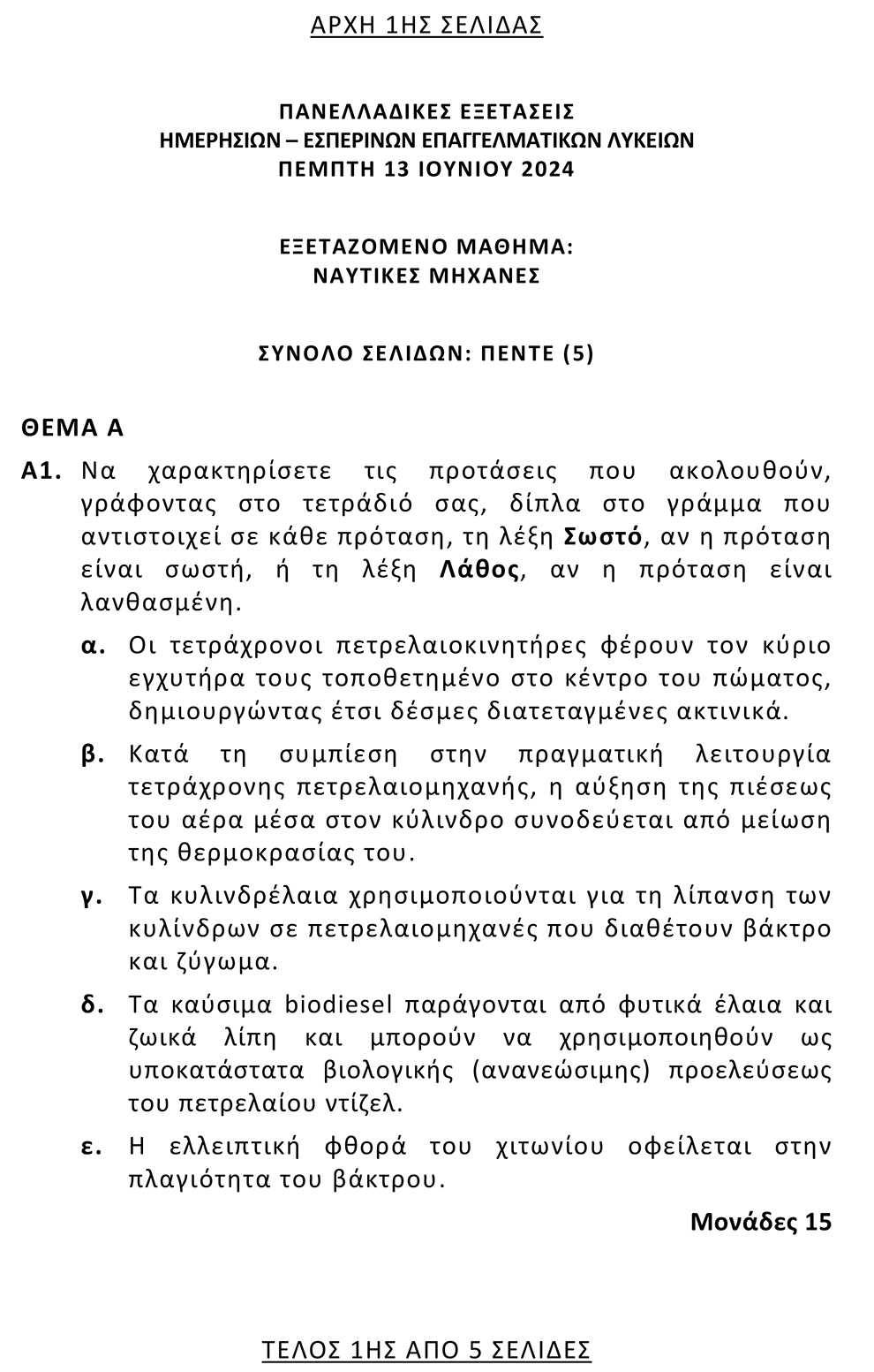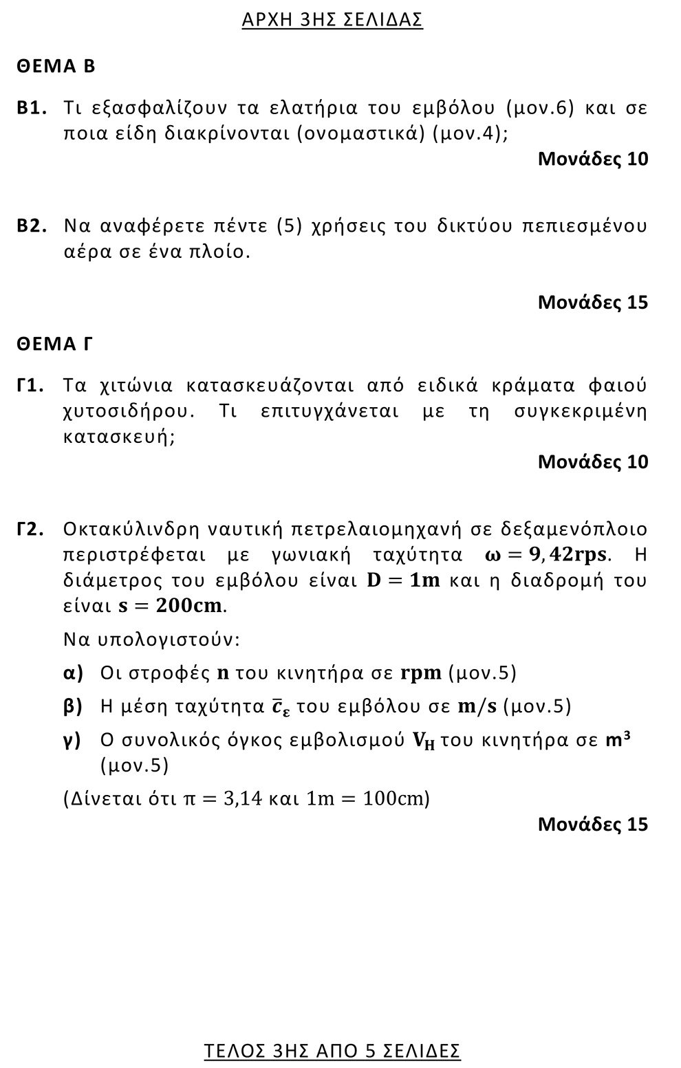 Για να δείτε τα θέματα του μαθήματος ΝΑΥΤΙΚΕΣ ΜΗΧΑΝΕΣ σε pdf πατήστε εδώ