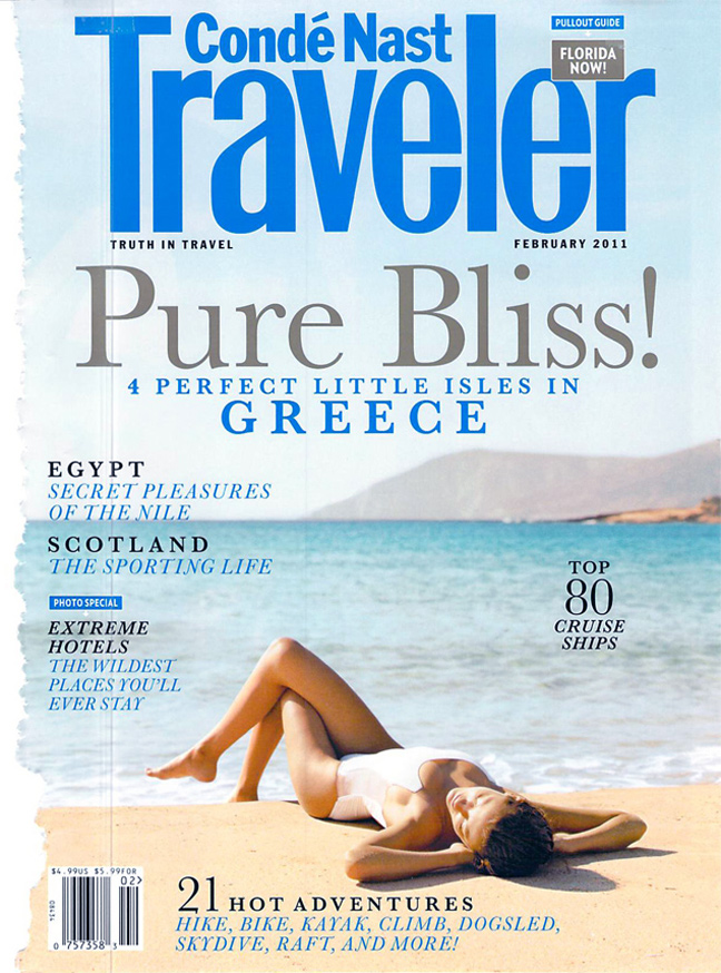 Σημαντική προώθηση για τον τουρισμό της χώρας αποτελούν τα αφιερώματα ξένων μέσων στις ομορφιές της Ελλάδας. Το τουριστικό περιοδικό «Conde Nast Traveler» αφιερώνει 15 σελίδες στη χώρα σε ένα κείμενο που τιτλοφορείται «Pure Bliss, 4 Perfect Little Isles In Greece» (Καθαρή Ευδαιμονία: 4 τέλεια μικρά νησιά στην Ελλάδα). Εκεί, οι αναγνώστες του περιοδικού που κυκλοφορεί στην Αμερική, προτρέπονται να επισκεφτούν τις Κυκλάδες, ενώ στο εκτενές αφιέρωμα υπάρχουν φράσεις του Νίκου Καζαντζάκη και του Οδυσσέα.