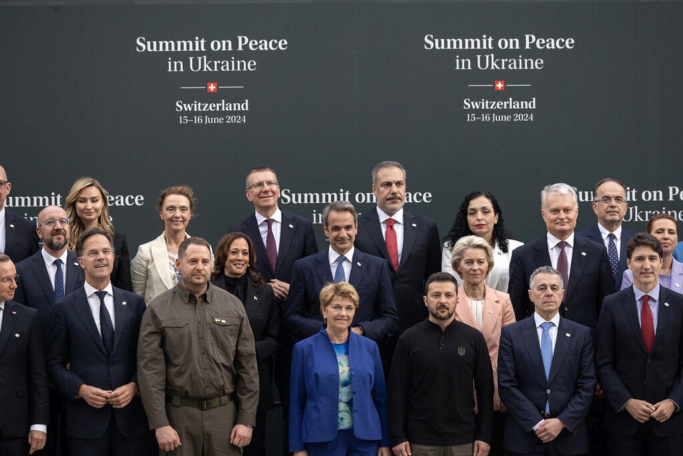 Πριν το δείπνο, οι ηγέτες συγκεντρώθηκαν για την οικογενειακή φωτογραφία, με τον Πρωθυπουργό να λαμβάνει τη θέση ανάμεσα στην Αντιπρόεδρο των ΗΠΑ Καμάλα Χάρις, η οποία συμμετέχει στη Διάσκεψη αντί του Προέδρου Μπάιντεν και την Πρόεδρο της Ευρωπαϊκής Επιτροπής Ούρσουλα Φον Ντερ Λάιεν, και πίσω από τους δύο συνδιοργανωτές, τον Πρόεδρο Ζελένσκι της Ουκρανίας και την Πρόεδρο της Ελβετίας Βιόλα Άμχερτ.