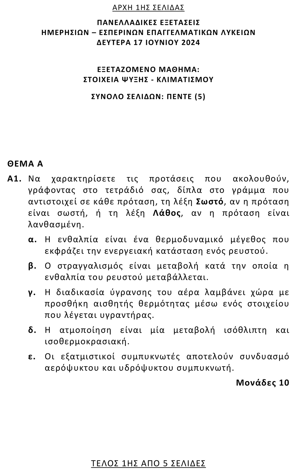 Δείτε σε PDF τα θέματα του μαθήματος «ΣΤΟΙΧΕΙΑ ΨΥΞΗΣ-ΚΛΙΜΑΤΙΣΜΟΥ» πατώντας εδώ