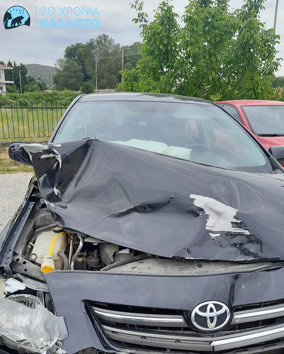 Φωτογραφία από το ΙΧ που ενεπλάκη στη σύγκρουση με το άγριο ζώο:
