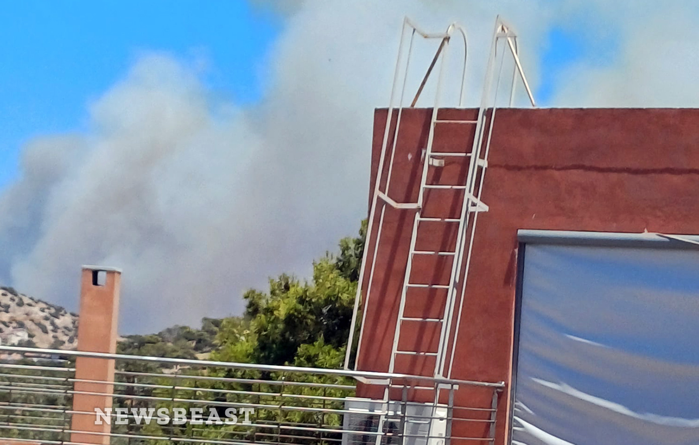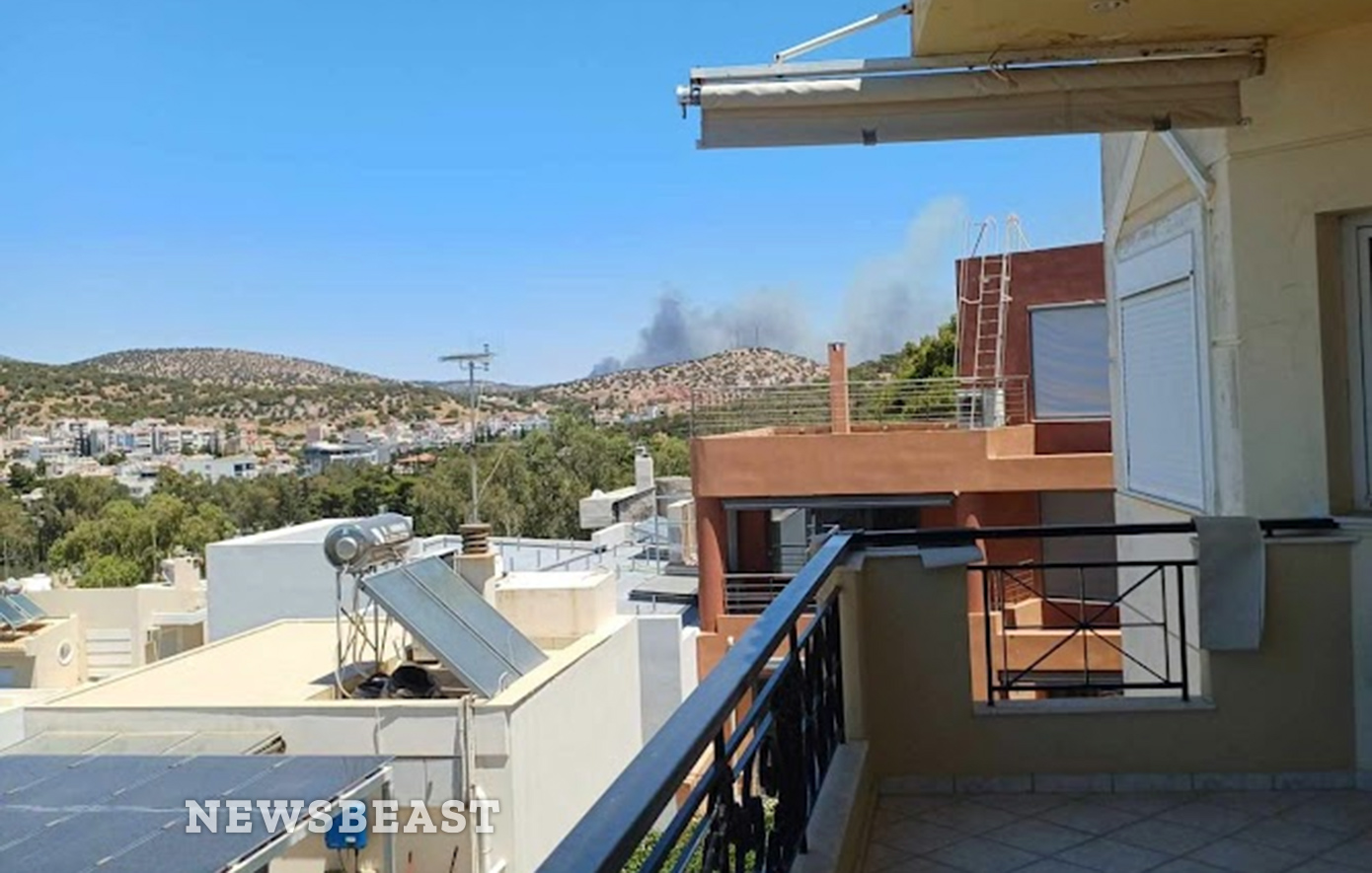 Η φωτιά όπως φαίνεται από τα Πηγαδάκια Βούλας: