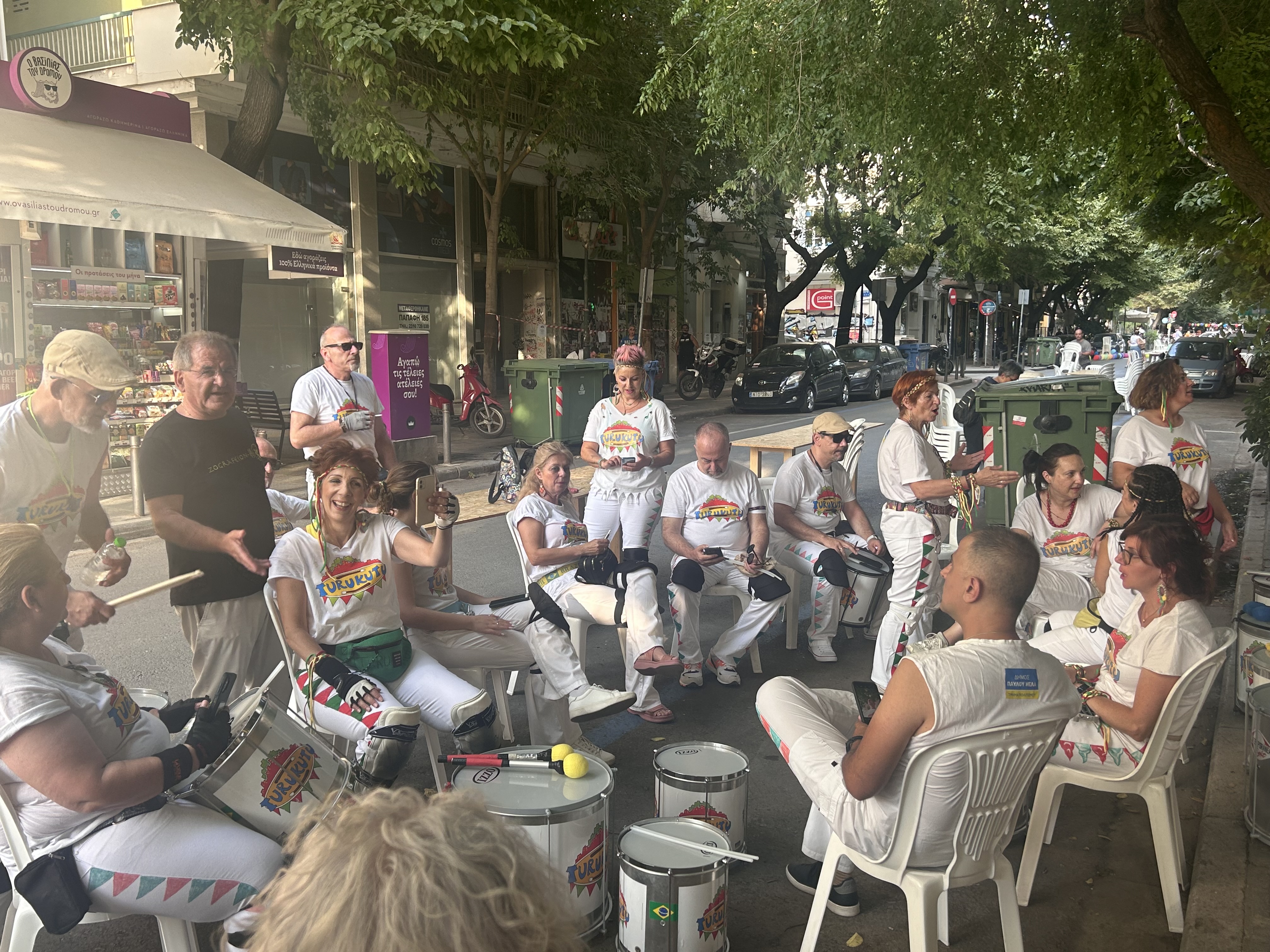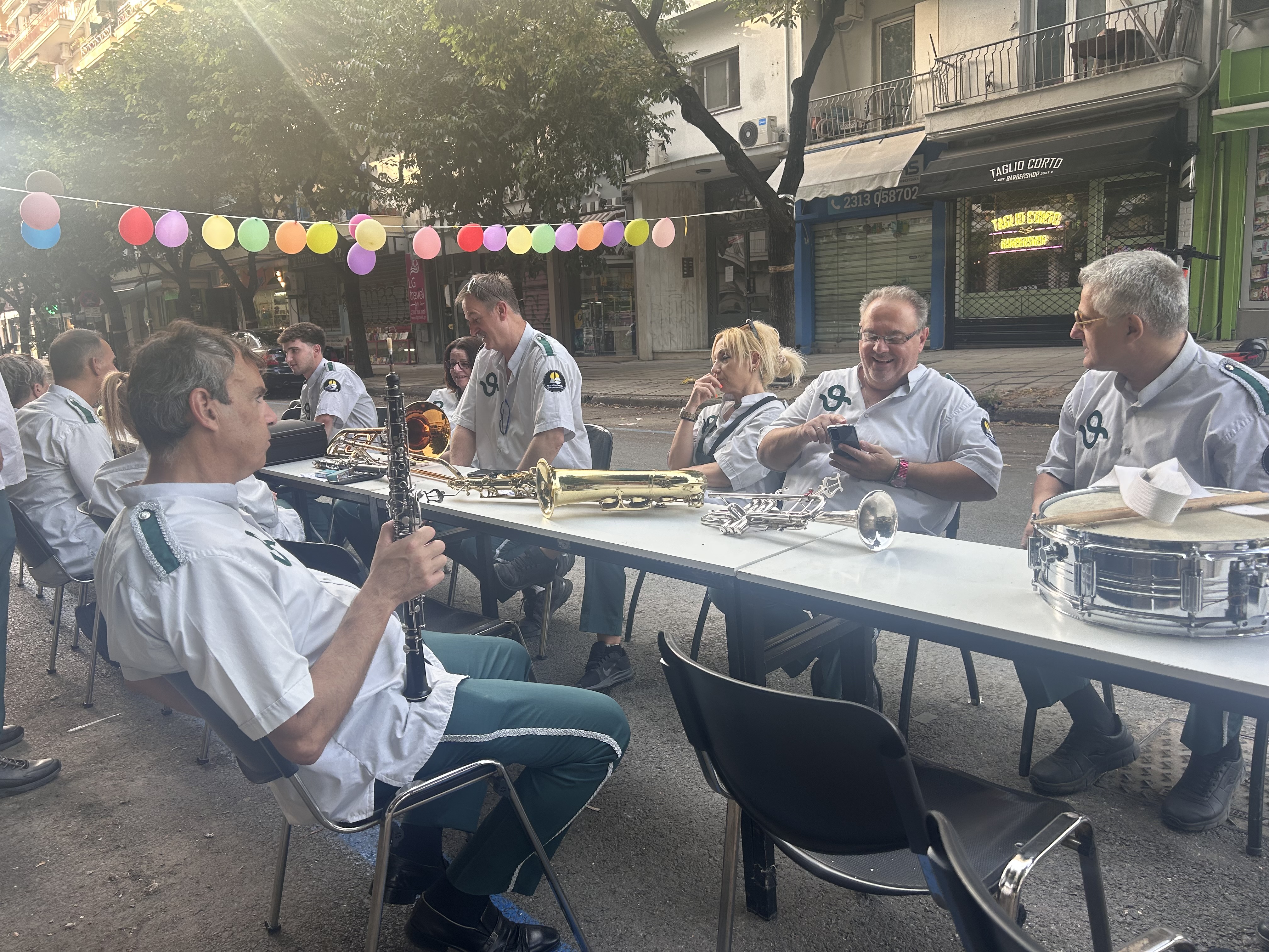 Λίγο μετά τις 8 τα περισσότερα τραπέζια έχουν γεμίσει, σπιτικά φαγητά, σνακ, αλλά και φαγητά από τα γύρω μαγαζιά. Η μυρωδιά της μπύρας που ρέει άφθονη στα τραπέζια δίνει στην ατμόσφαιρα μία νότα δροσιάς. Μουσικές από όλον τον κόσμο πλημμυρίζουν τον δρόμο. Κλαρίνα, σαξόφωνα, ηλεκτρικές κιθάρες, σε κάθε γωνιά έχει στηθεί και μία μουσική παράσταση και γύρω από τους μουσικούς μικροί και μεγάλοι τραγουδούν, χορεύουν, φωτογραφίζονται.