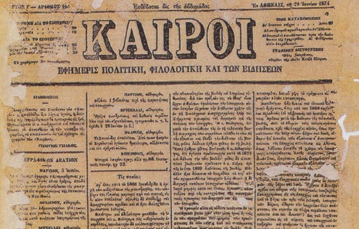 1874: Δημοσιεύεται στην εφημερίδα «Καιροί» άρθρο του Χαρίλαου Τρικούπη με τίτλο «Τις πταίει», στο οποίο καταδεικνύει ως υπεύθυνο για την πολιτική κρίση που διέρχεται ο τόπος τον βασιλιά Γεώργιο Α’. Επίσης, σχολιάζει αρνητικά τις επιλογές του στον σχηματισμό κυβερνήσεων και ζητά να λαμβάνει υπόψη του κατά το σχηματισμό των κυβερνήσεων την Αρχή της Δεδηλωμένης.