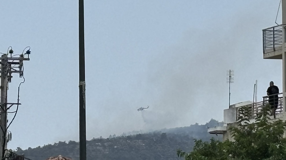 Οι φλόγες κατακαίνε δασική έκταση κοντά στον οικισμό. Η φωτιά χαρακτηρίζεται ως υψηλής επικινδυνότητας από την Πυροσβεστική.