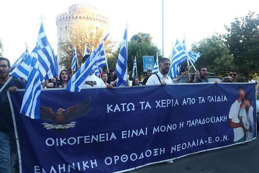 Το Family Pride στη Θεσσαλονίκη ξεκίνησε στις 19:00 το απόγευμα μπροστά στον Λευκό Πύργο, έπειτα από σχετικό κάλεσμα της ομάδας «Ελληνίδες μάνες». Εκατοντάδες άτομα με μπαλόνια, σημαίες, εικόνες θρησκευτικού περιεχομένου και πλακάτ με συνθήματα, έστειλαν τα δικά τους μηνύματα κατά της ισότητας στον πολιτικό γάμο.