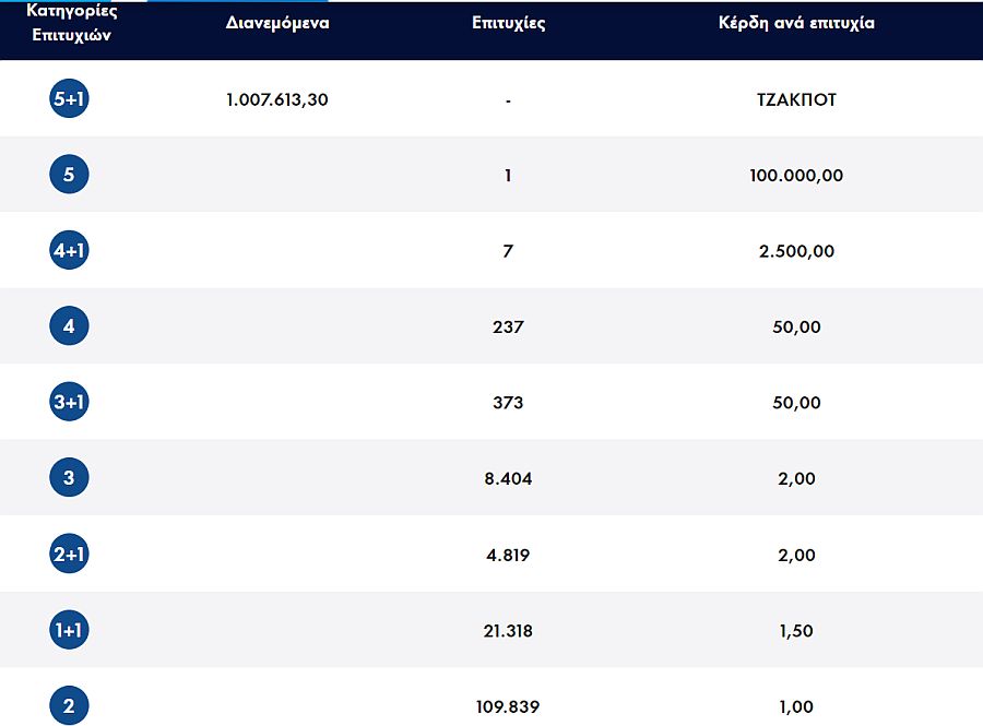 Υπενθυμίζεται πως οι κληρώσεις του Τζόκερ πραγματοποιούνται κάθε Τρίτη, Πέμπτη και Κυριακή στις 22:00.