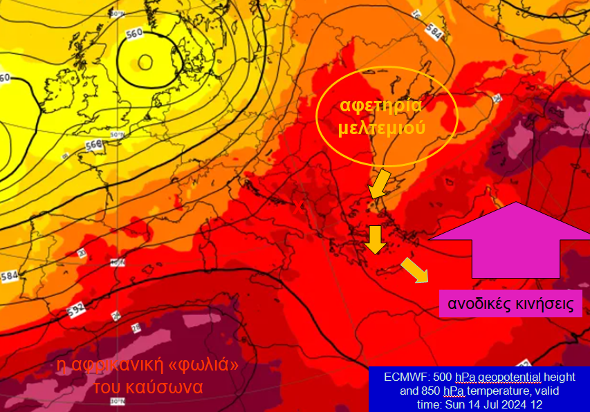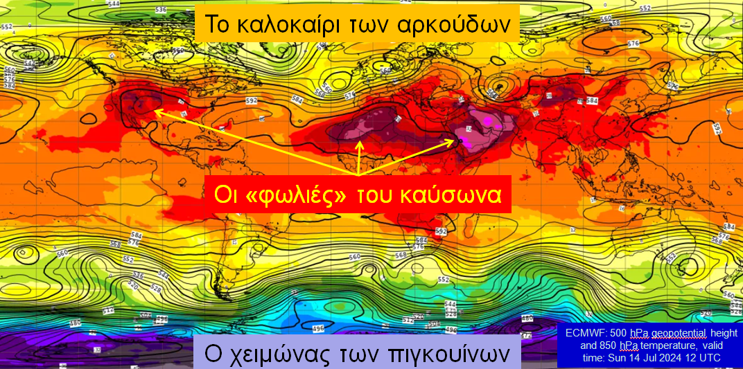 «Οι ‘’φωλιές’’ του καύσωνα βρίσκονται στην υποτροπική ζώνη των υψηλών πιέσεων. Έχετε συνειδητοποιήσει πόσο κοντά στη ζώνη αυτή βρίσκονται οι μεσογειακές χώρες, συμπεριλαμβανομένης βέβαια της πατρίδας μας;», γράφει ο μετεωρολόγος.