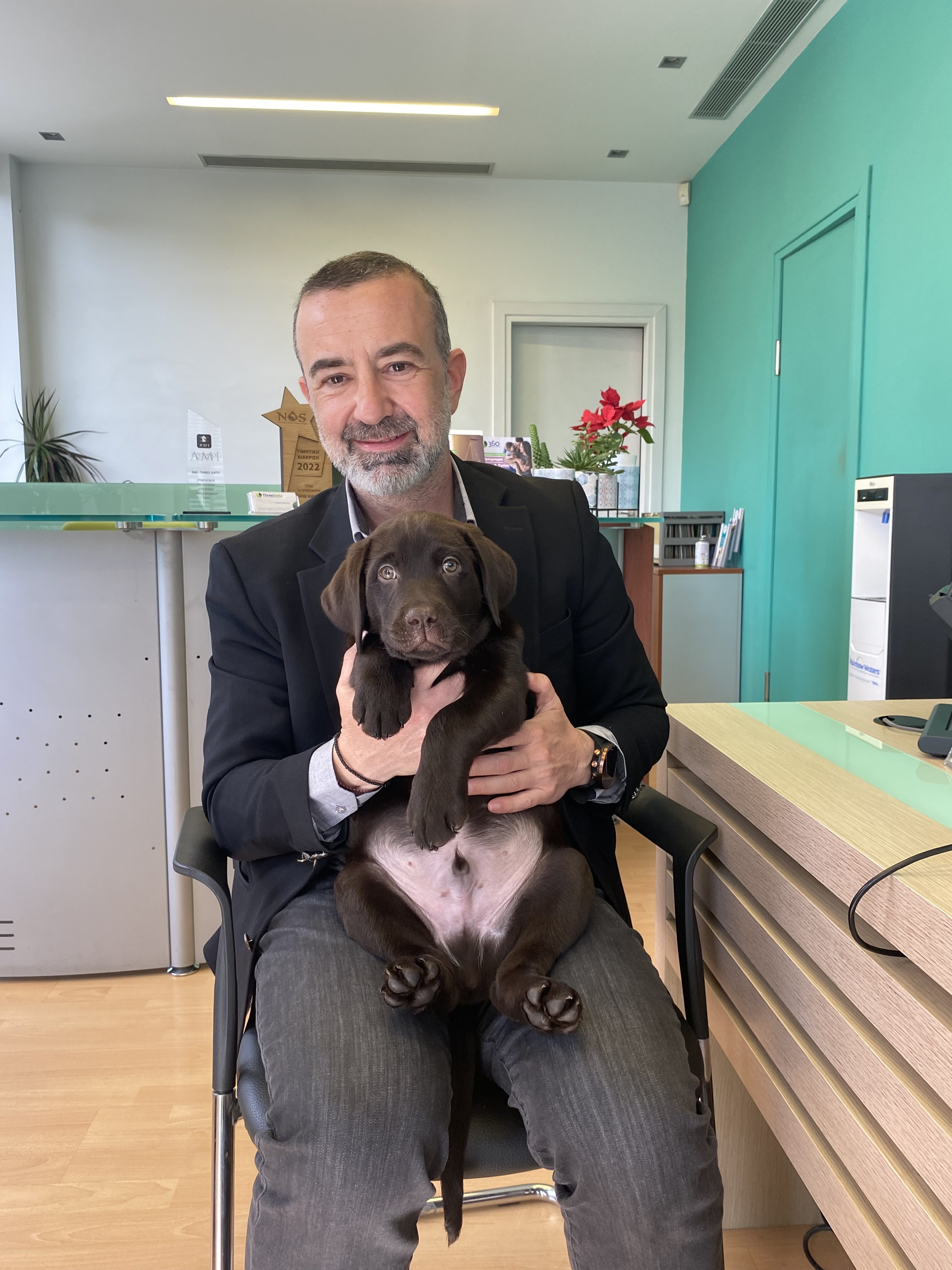 Αυτό είναι η πεμπτουσία της όλης ιστορίας. Είναι αυτό που κοστίζει τα πολλά χρήματα και είναι η βασική δουλειά που κάνουμε. Αρχικά, πώς επιλέγουμε έναν σκύλο. Δεν αγοράζουμε απλά ένα λαμπροντόρ. Κοιτάζουμε να είναι από εκτροφείο που συνεργαζόμαστε. Κοιτάμε τον εκτροφέα και ο εκπαιδευτής κοιτά το γενεαλογικό δέντρο του σκύλου, τα αίματά του και κάποια χαρακτηριστικά. Όταν τα σκυλάκια είναι περίπου δύο μηνών τους κάνουμε κάποια τεστ που μπορεί να έχουν να κάνουν με το φόβο, με την εξυπνάδα. Όλα αυτά σε συνεργασία με τον εκπαιδευτή τους και με έναν κτηνίατρο γιατί κάνουμε εξετάσεις κατά καιρούς. Αν δούμε κάποιο σκυλάκι που έχει συμπτώματα δυσπλασίας δεν συνεχίζεται η εκπαίδευση του.