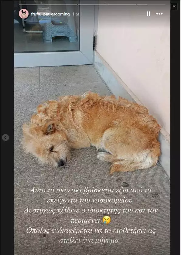 Όπως μεταδίδει το trikalavoice.gr η σελίδα Fru Fru Pet Grooming ανέβασε σε στόρι το λυπημένο σκυλάκι με σκοπό να βρεθεί κάποιος να το υιοθετήσει.