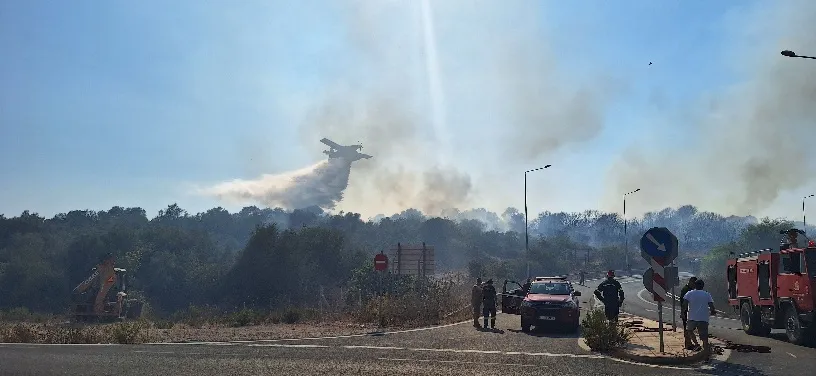 Στην περιοχή επιχειρούν 20 πυροσβέστες με μία ομάδα πεζοπόρου τμήματος και έξι οχήματα, ενώ ρίψεις νερού από αέρος πραγματοποιούν τρία πυροσβεστικά αεροπλάνα.