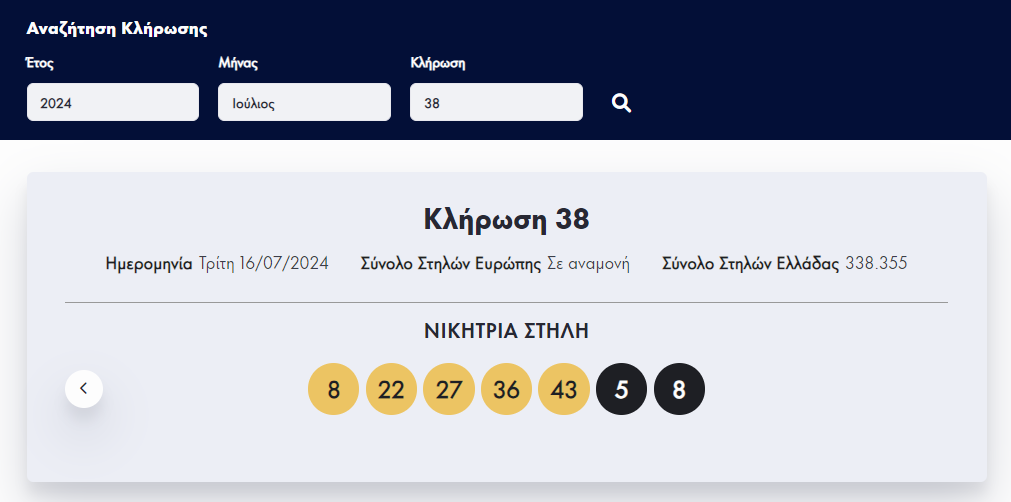 Οι τυχεροί αριθμοί είναι οι εξής: 8, 22, 27, 36, 43 και 5,8