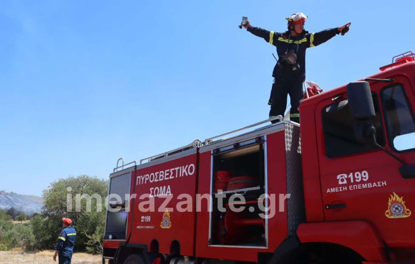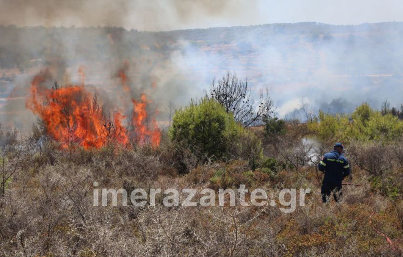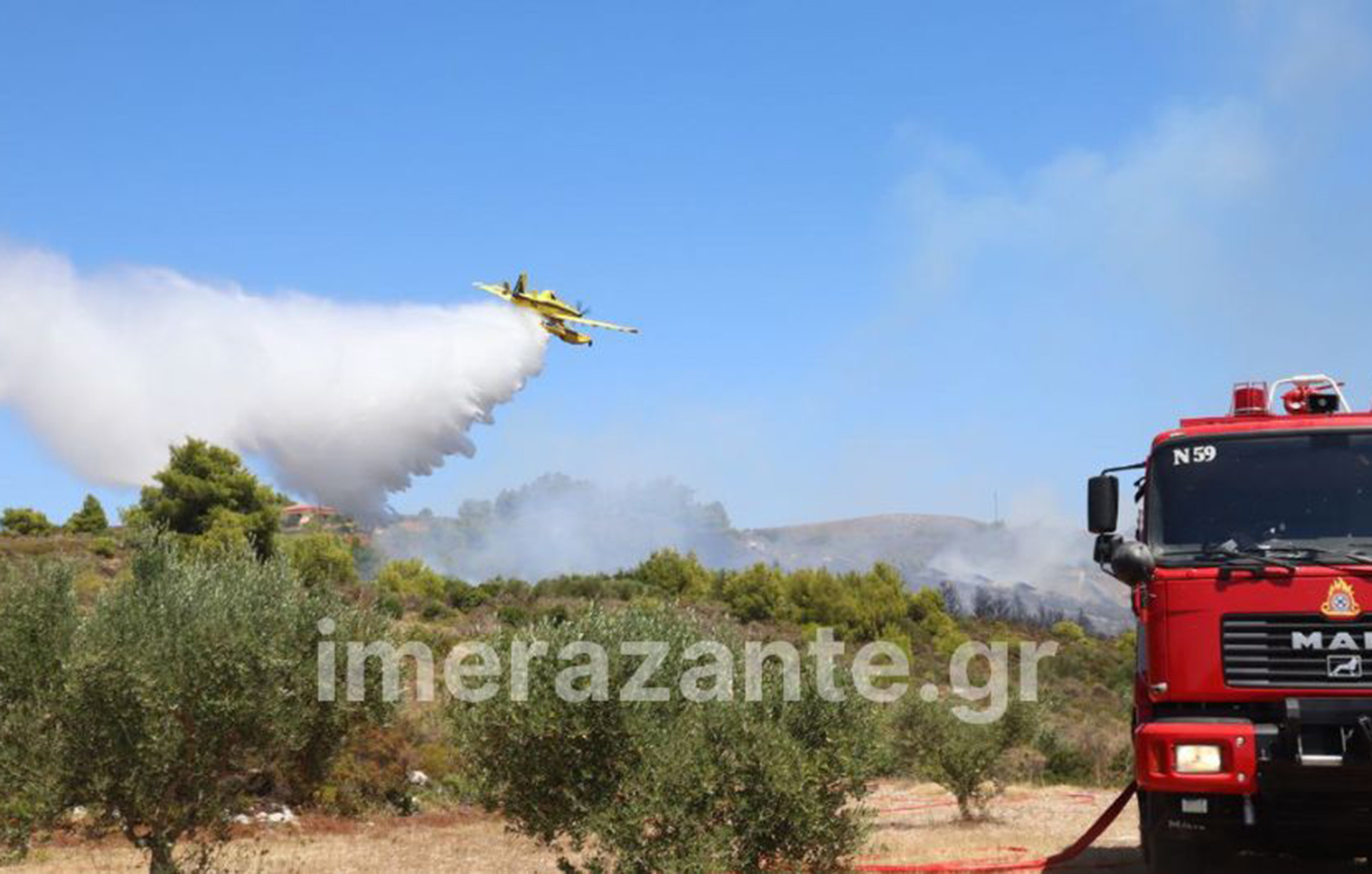 Μεγάλη πυρκαγιά είναι σε εξέλιξη σε δασική έκταση στο χωριό Αγαλάς στη Ζάκυνθο.