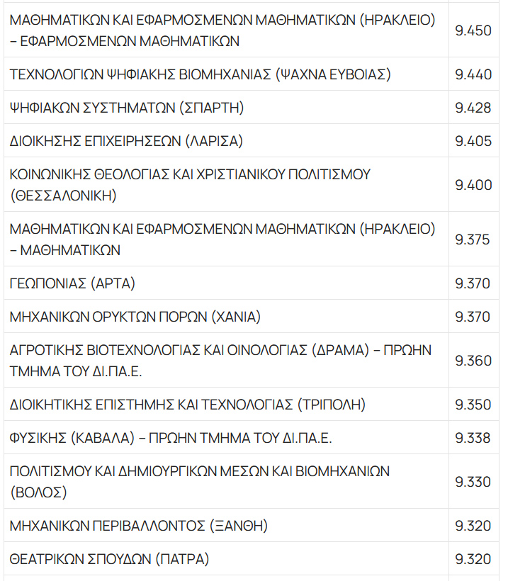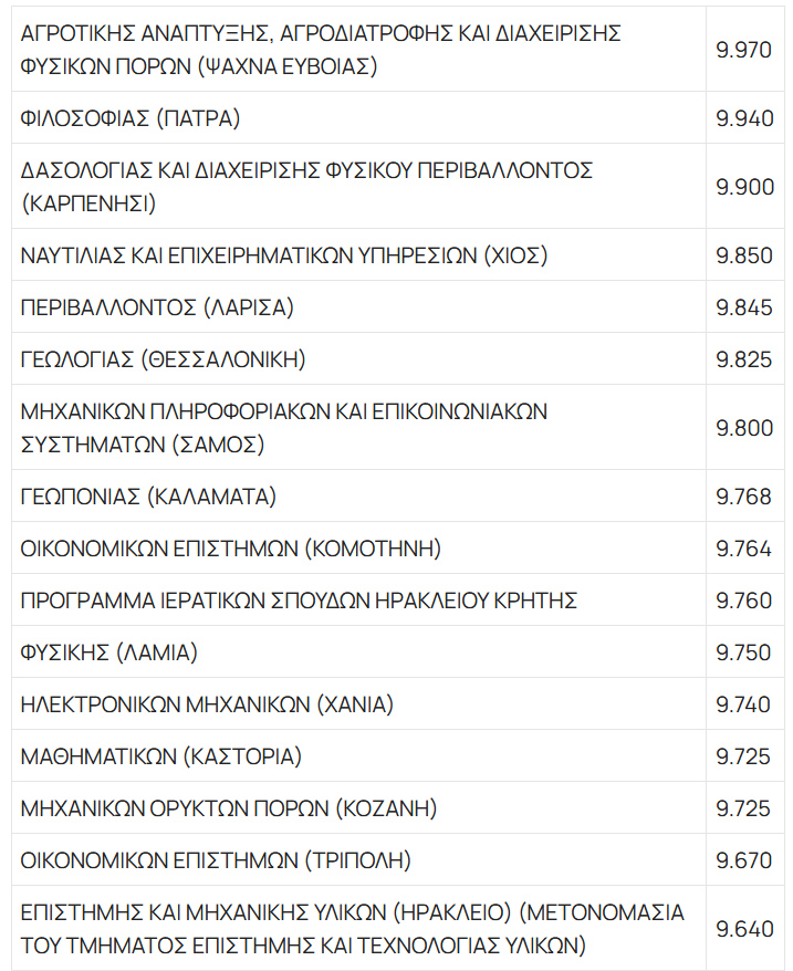 Οι σχολές που έπεσαν κάτω από 10.000 μόρια είναι οι εξής:
