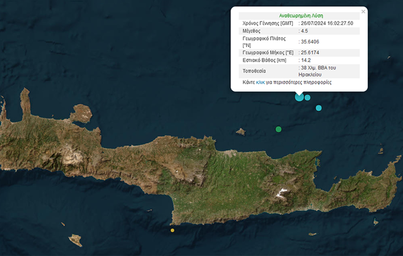 Σεισμός 4,5 Ρίχτερ σημειώθηκε το απόγευμα της Παρασκευής στην Κρήτη.