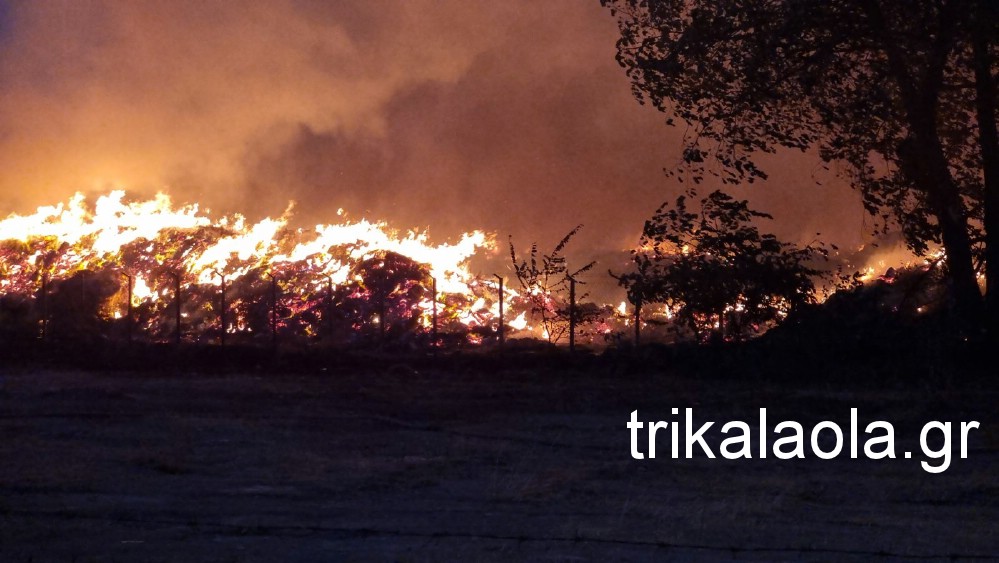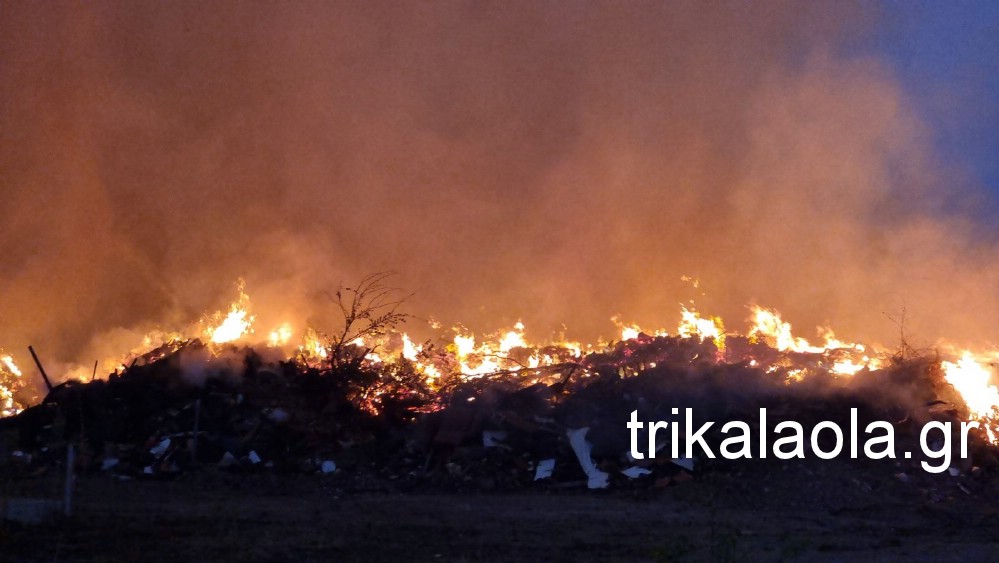 Μάχη με τις φλόγες εξακολουθούν να δίνουν επίγειες -και λίγο νωρίτερα εναέριες- δυνάμεις στον Σταθμό Μεταφόρτωσης Απορριμμάτων (ΣΜΑ) στο Ριζαριό Τρικάλων, όπου εκδηλώθηκε φωτιά γύρω στις 8:00 το απόγευμα.