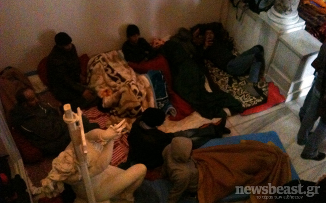 Αυτό είναι το εσωτερικό του μεγάρου Υπατία, όπου μεταφέρθηκαν τα ξημερώματα οι 236 μετανάστες που είχαν καταλύσει για πέντε ημέρες στη Νομική Σχολή της Αθήνας.