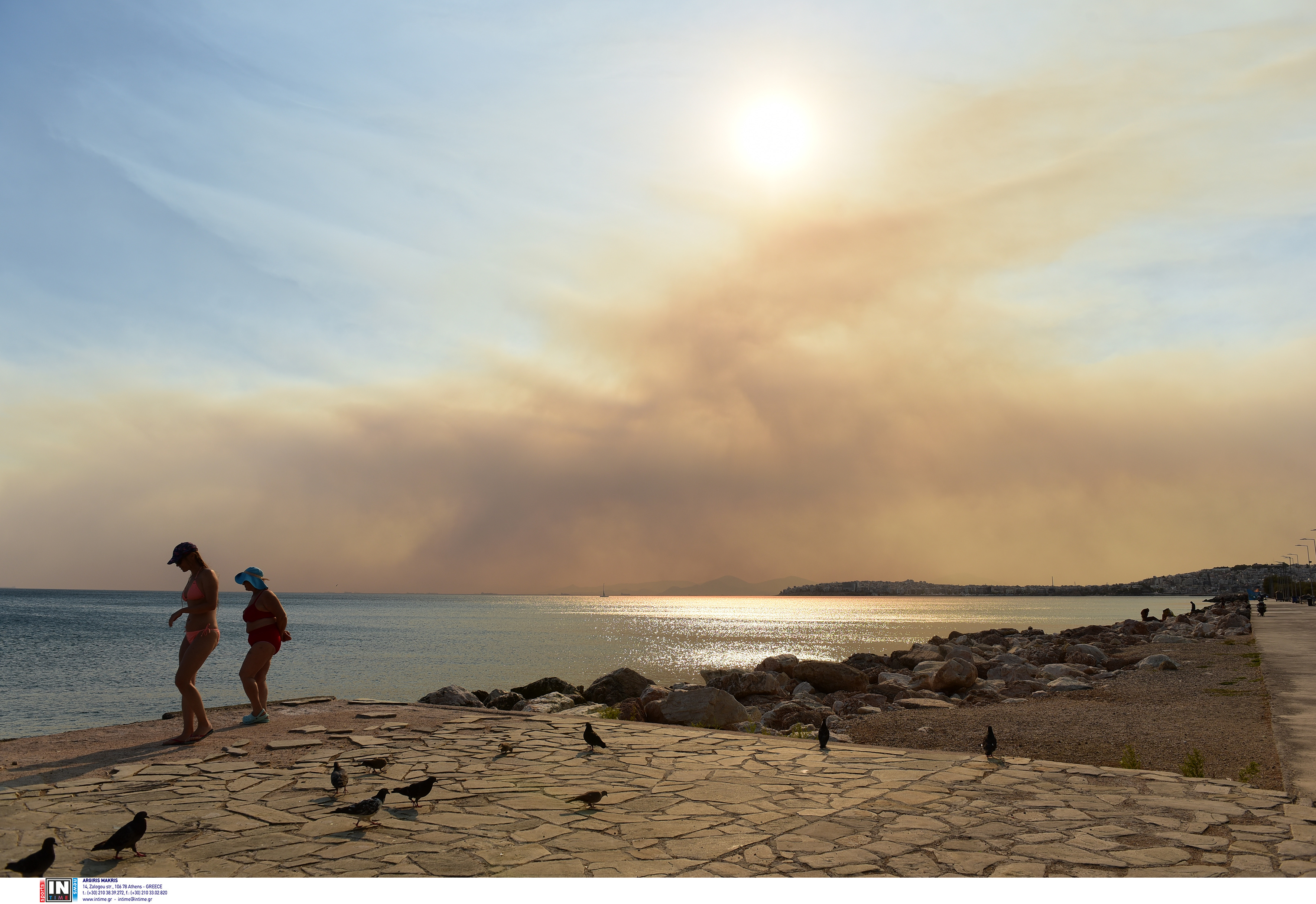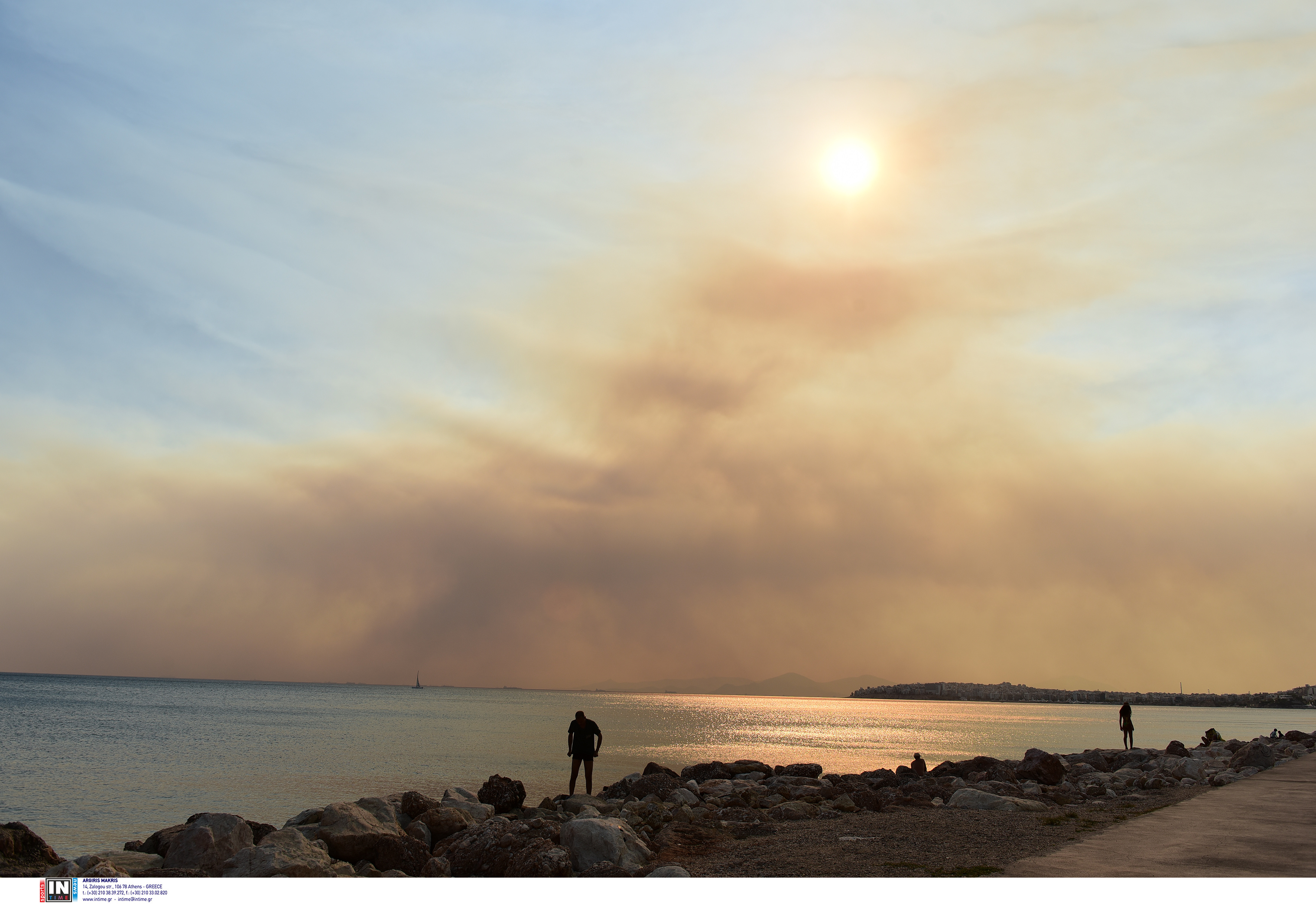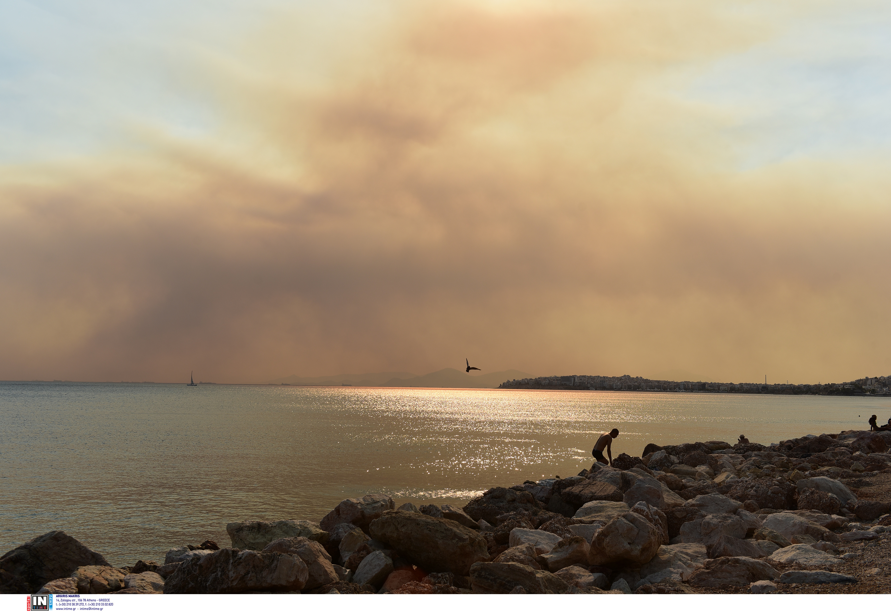 Οι καπνοί από την Εύβοια έχουν φτάσει στην Αττική. Οι φωτογραφίες από τον Φλοίσβο δείχνουν πως οι καπνοί αρχίζουν να σκεπάζουν τον αττικό ουρανό.