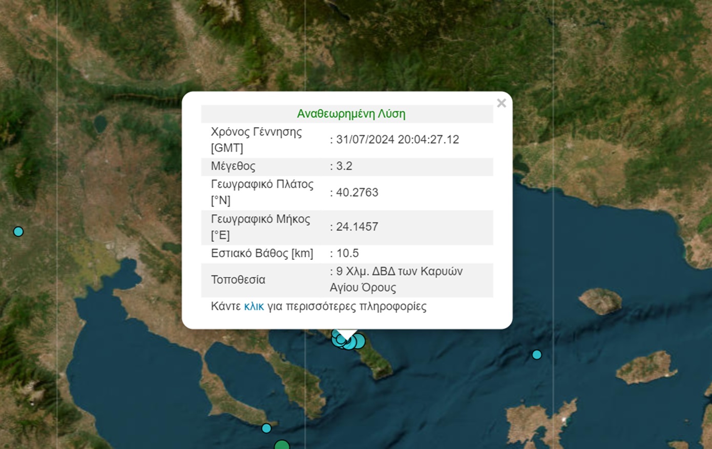 Μια ημέρα πριν σημειώθηκε επίσης σεισμός 3,2 Ρίχτερ στα 11 χιλιόμετρα δυτικά – βορειοδυτικά των Καρυών.