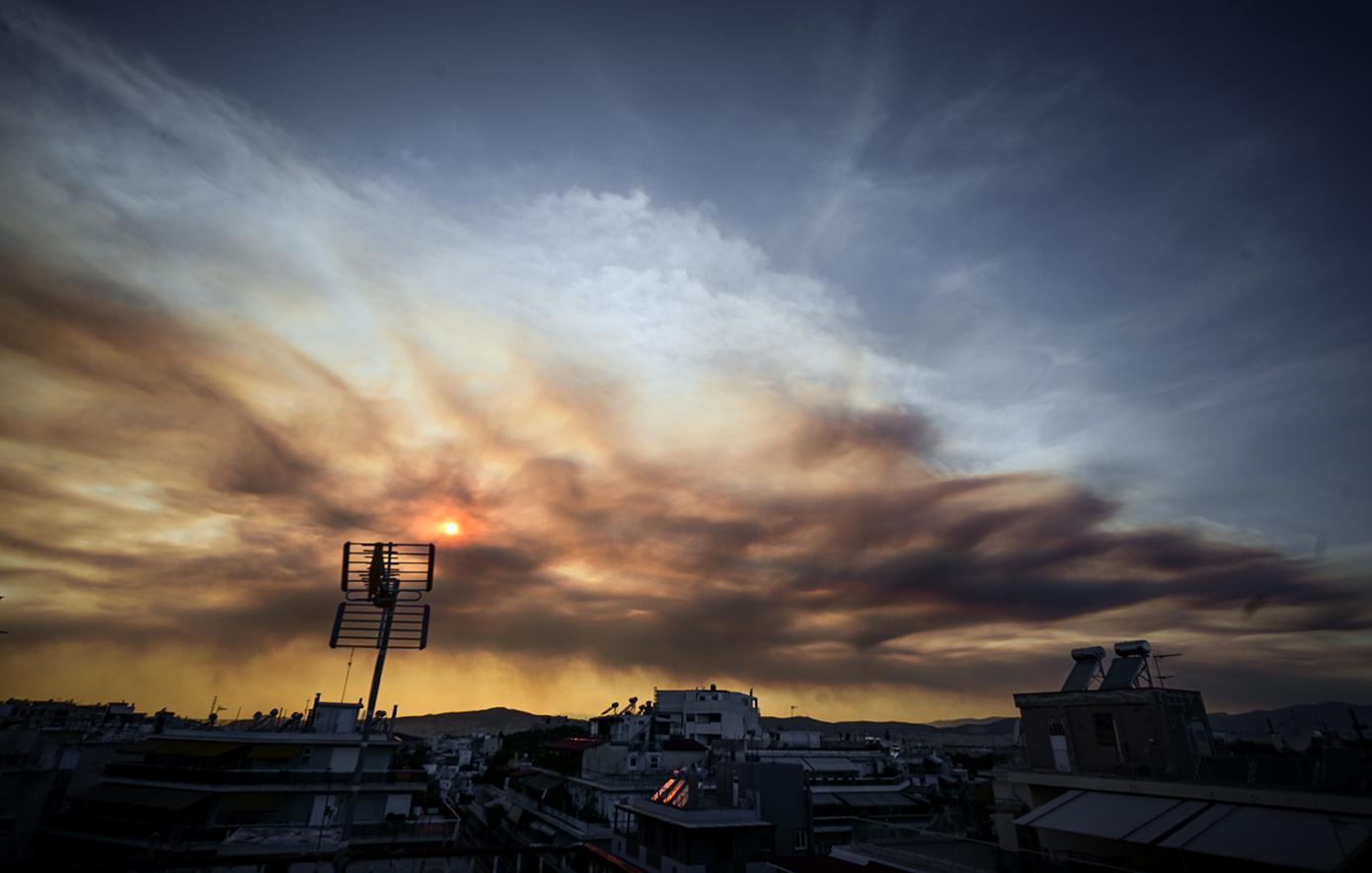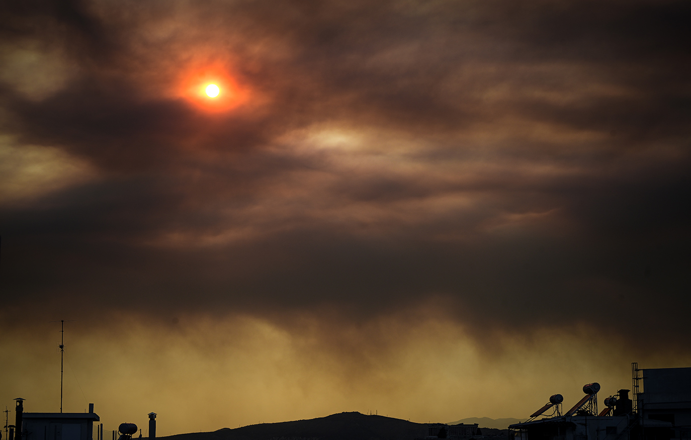 Οι κάτοικοι της Αττικής είδαν τον ουρανό να γεμίζει με πυκνούς, μαύρους καπνούς εξαιτίας της φωτιάς που μαινόταν στην Εύβοια.