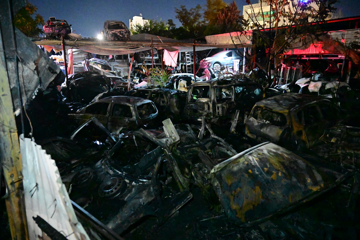 Σύμφωνα με τις πρώτες πληροφορίες από την Πυροσβεστική, έχουν καεί είτε ολοσχερώς είτε κάποια μέρη τους περίπου 50 οχήματα ωστόσο για να δοθεί ο ακριβής αριθμός πρέπει να γίνει η επίσημη καταγραφή των ζημιών.