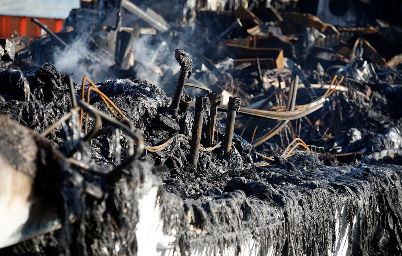 Οι καπνοί ήταν τόσο έντονοι που δέκα άτομα τα οποία έκαναν βόλτα στην προβλήτα εγκλωβίστηκαν και κάλεσαν για βοήθεια.