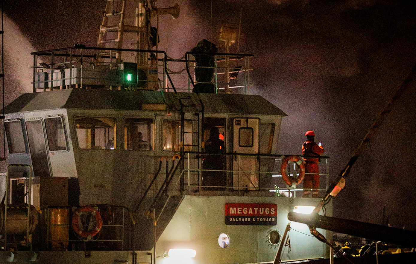 Ο χώρος στο λιμάνι έχει αποκλειστεί, ενώ το λιμενικό έχει τοποθετήσει πλωτό φράγμα για την αποτροπή της θαλάσσιας ρύπανσης.