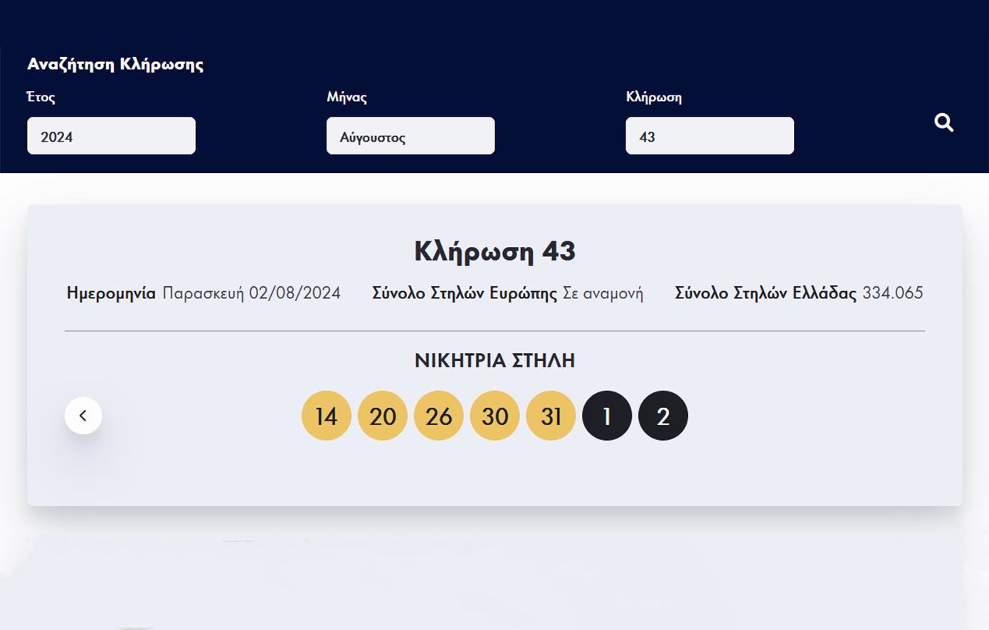 Πραγματοποιήθηκε σήμερα, Παρασκευή 02 Αυγούστου, η 43η κλήρωση του Eurojackpot, με την πρώτη κατηγορία να μοιράζει το ποσό των 17 εκατομμυρίων ευρώ.