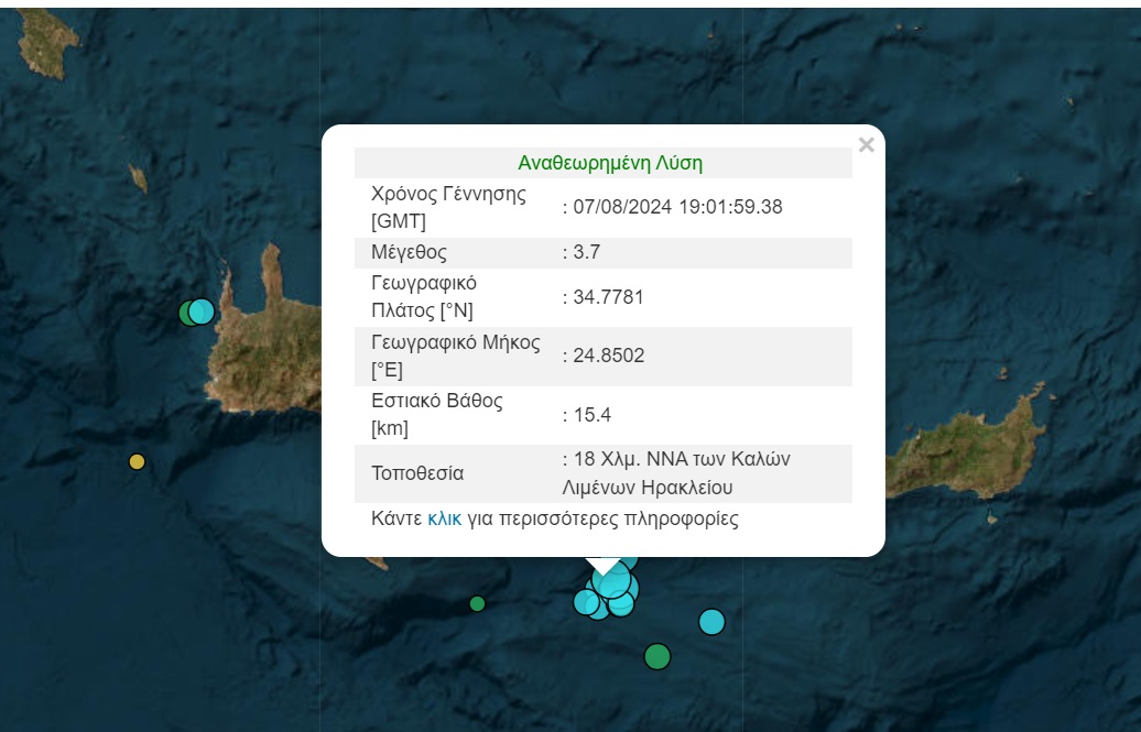 Δύο ασθενείς σεισμικές δονήσεις με διαφορά 5 λεπτών ταρακούνησαν το βράδυ της Τετάρτης 07/08 την Κρήτη.