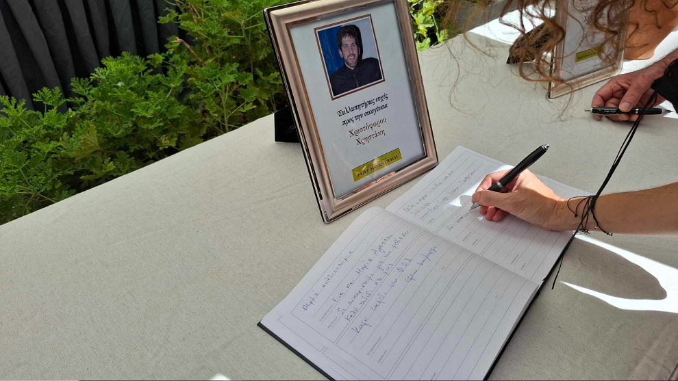 Σύμφωνα με δημοσίευμα του cretalive.gr, απαρηγόρητοι οι γονείς του – η μητέρα του ήταν ντυμένη στα λευκά- καθισμένοι σε καρέκλες δίπλα στο παιδί τους δέχονταν τα συλλυπητήρια κόσμου και αξιωματικών της Πυροσβεστικής που έσπευσαν για το τελευταίο αντίο στο αδικοχαμένο παλικάρι.