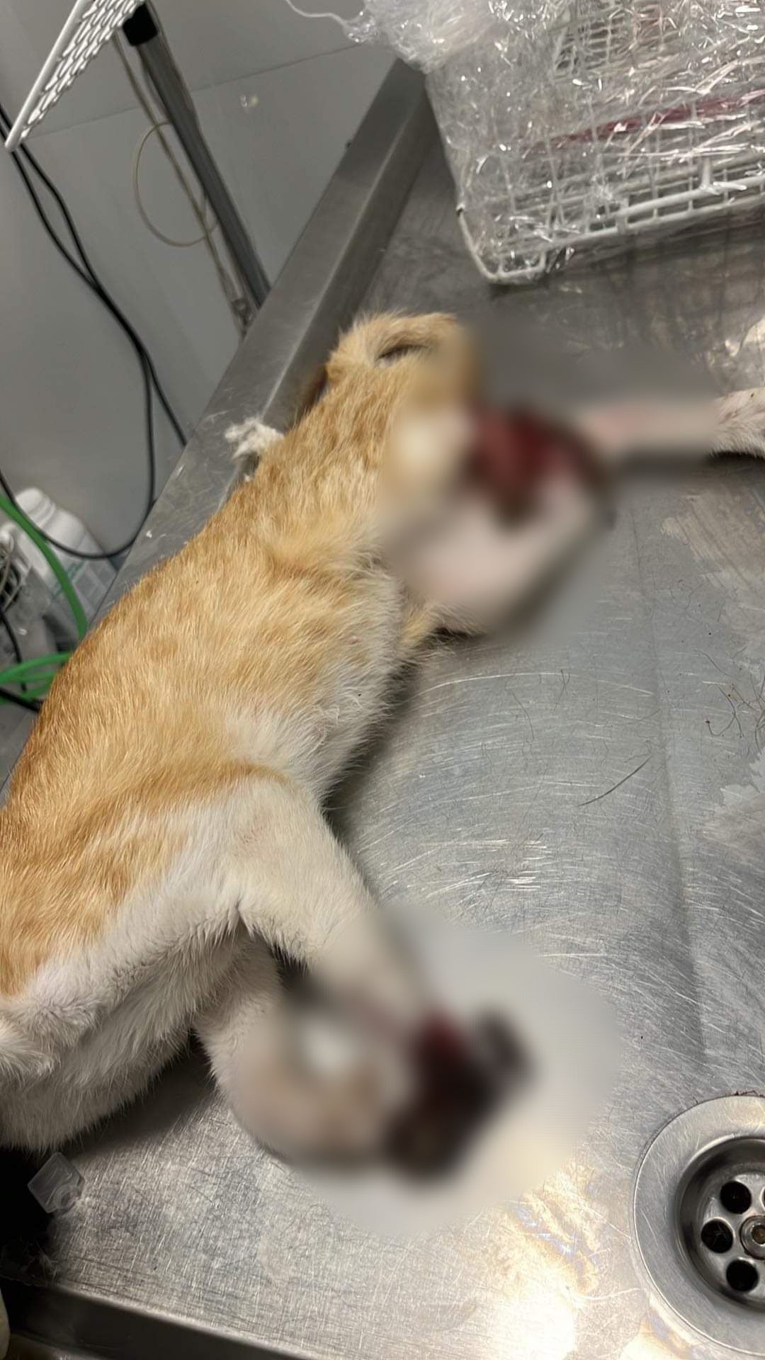 Ωστόσο, από την αρχική εξέταση δεν διαπιστώθηκε εξακριβωμένα αν τα τραύματα της γάτας προκλήθηκαν από κάποιο ατύχημα ή από άνθρωπο.