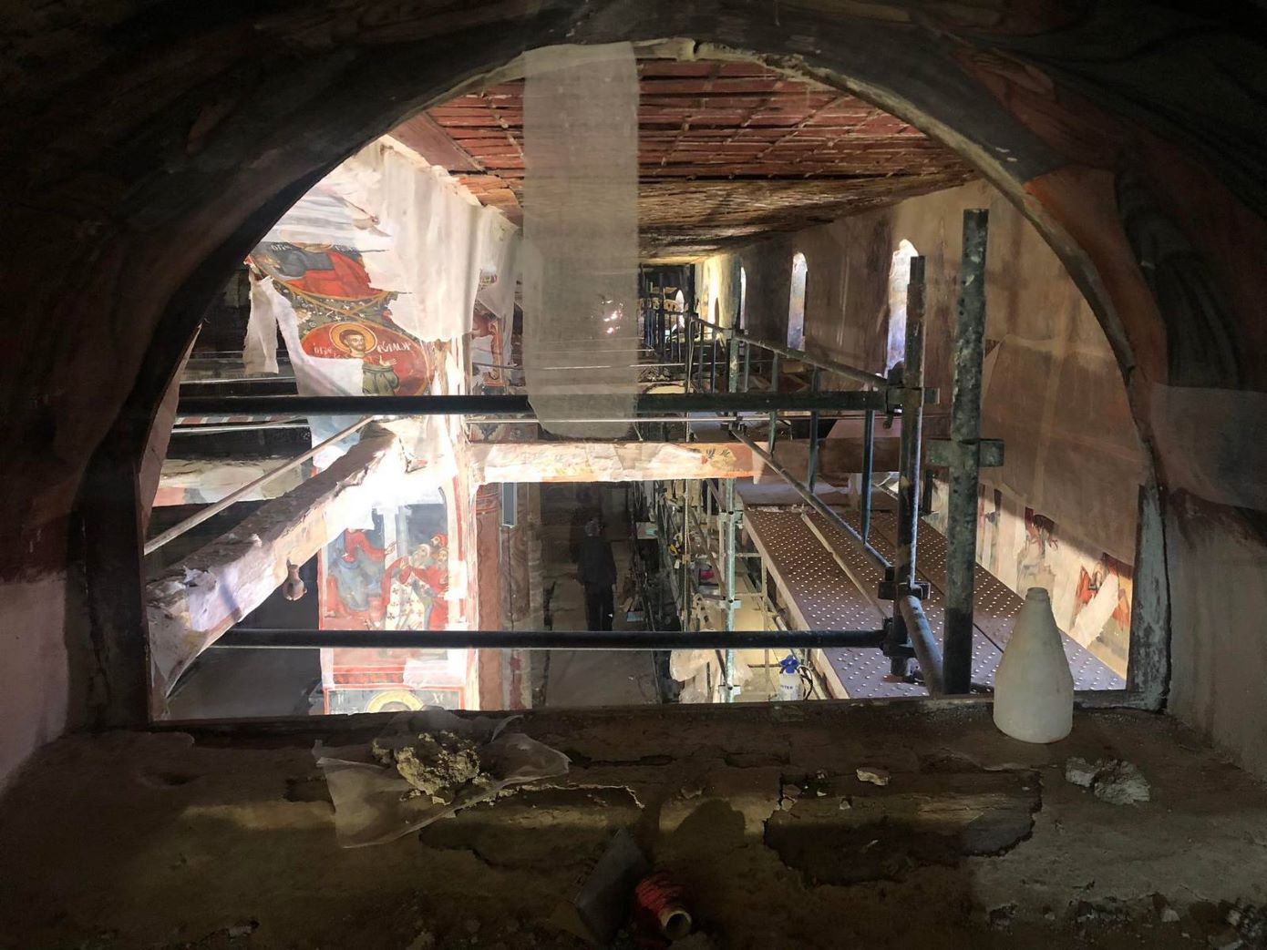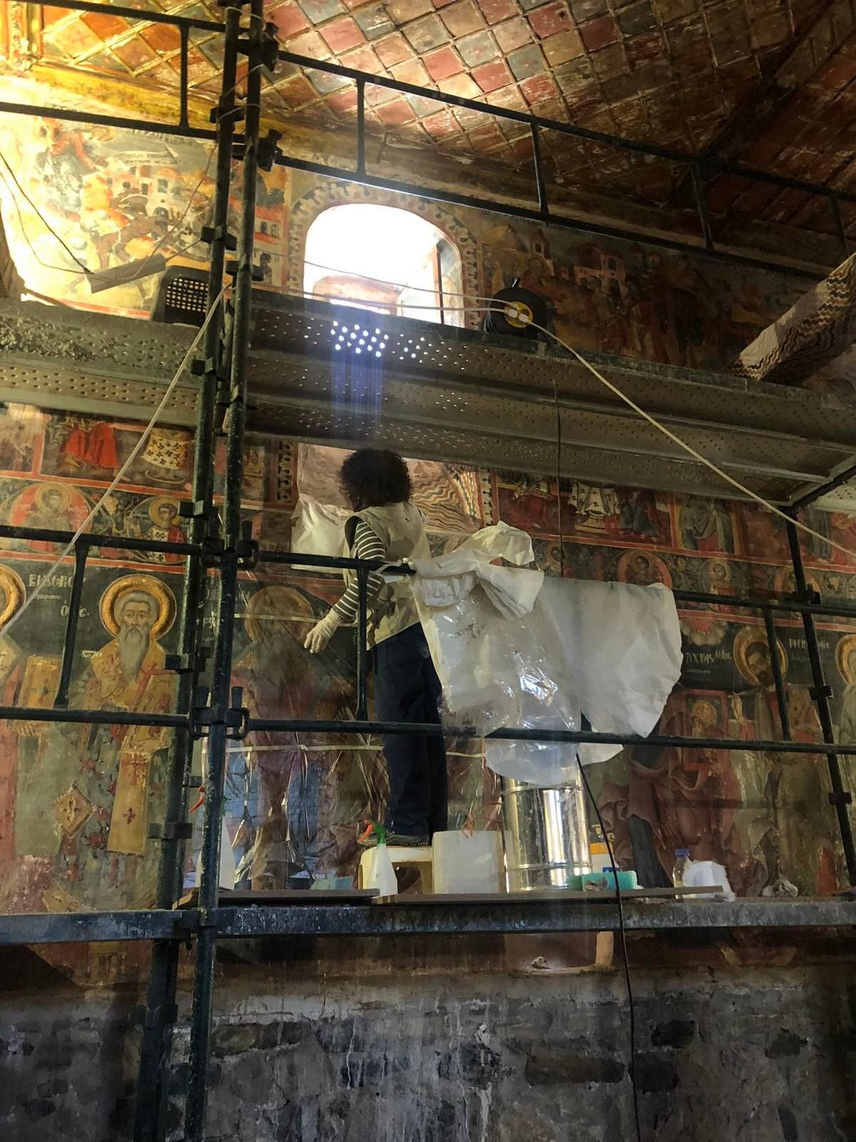 Οι συντηρητές της Διεύθυνσης Συντήρησης Αρχαίων και Νεωτέρων Μνημείων ανέλαβαν το δύσκολο έργο της αποκατάστασης των τοιχογραφιών. Τα κινητά μέρη, όπως εικόνες, το σπάνιο ξυλόγλυπτο τέμπλο, ο άμβωνας και ο δεσποτικός θρόνος μεταφέρθηκαν στα εργαστήρια της ΔΣΑΝΜ, όπου αποκαταστάθηκαν πλήρως.