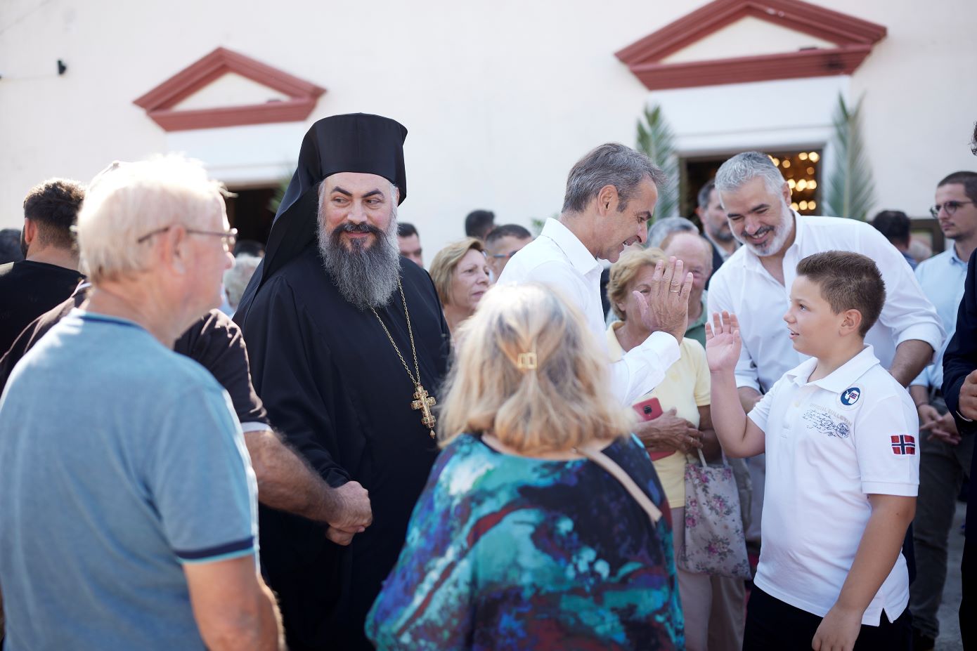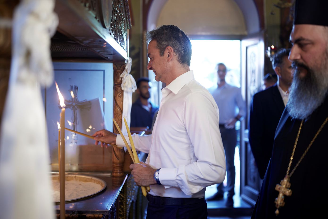 Ο Κυριάκος Μητσοτάκης, που πραγματοποεί ιδιωτική επίσκεψη στα Χανιά για τη γιορτή του Δεκαπενταύγουστου, προσήλθε το πρωί στον ιερό ναό της Θεοτόκου στις Στέρνες για να παρακολουθήσει τη λειτουργία.