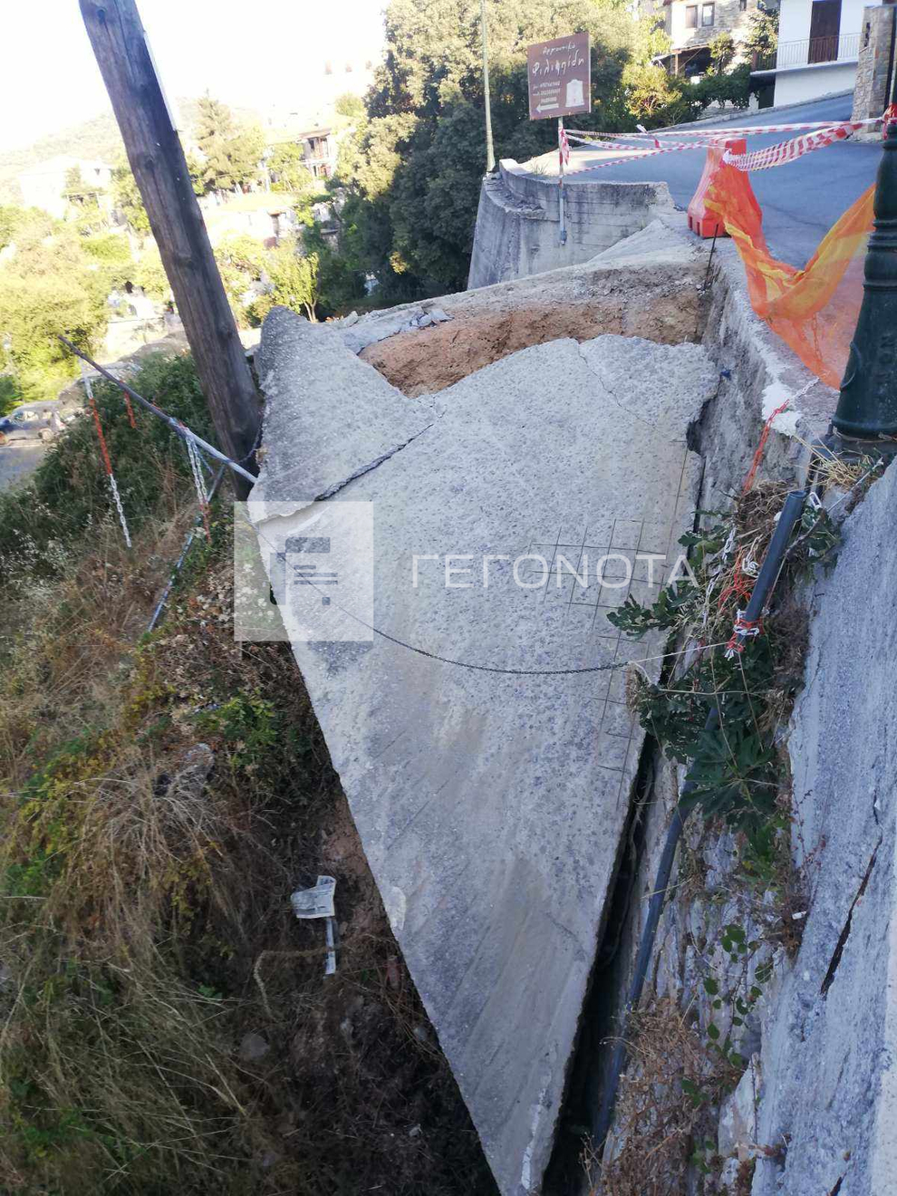 Συναγερμός σήμανε ανήμερα του Δεκαπενταύγουστου στις Μηλιές Πηλίου. Σημείο του δρόμου κατέρρευσε με αποτέλεσμα να εγκλωβιστούν σε πάρκινγκ 15 αυτοκίνητα.
