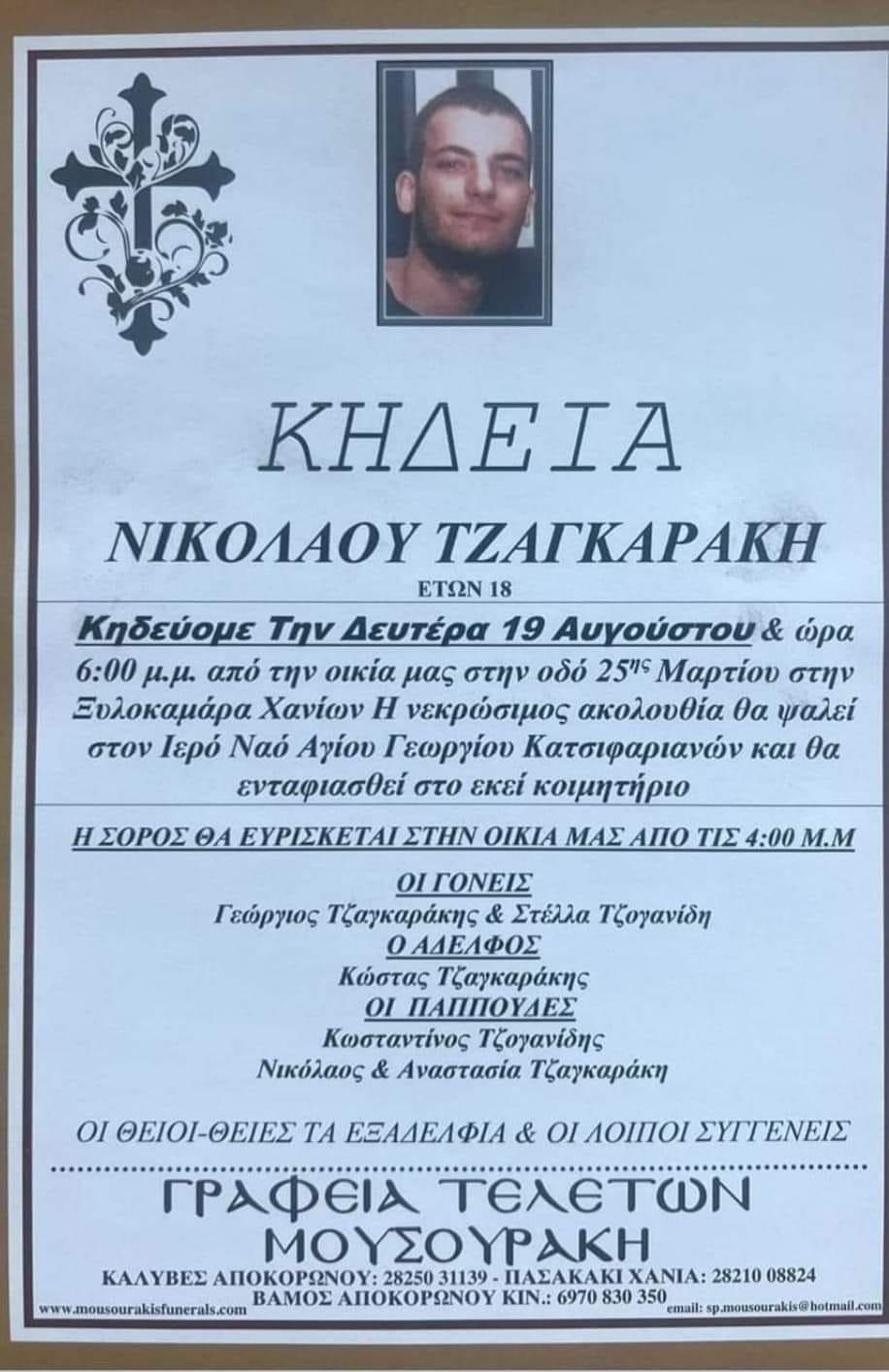 Τέλος, το τελευταίο αντίο είπαν στον 19χρονο Νίκο στις 6 το απόγευμα στον Ιερό Ναό Αγίου Γεωργίου Κατσιφαριανών.