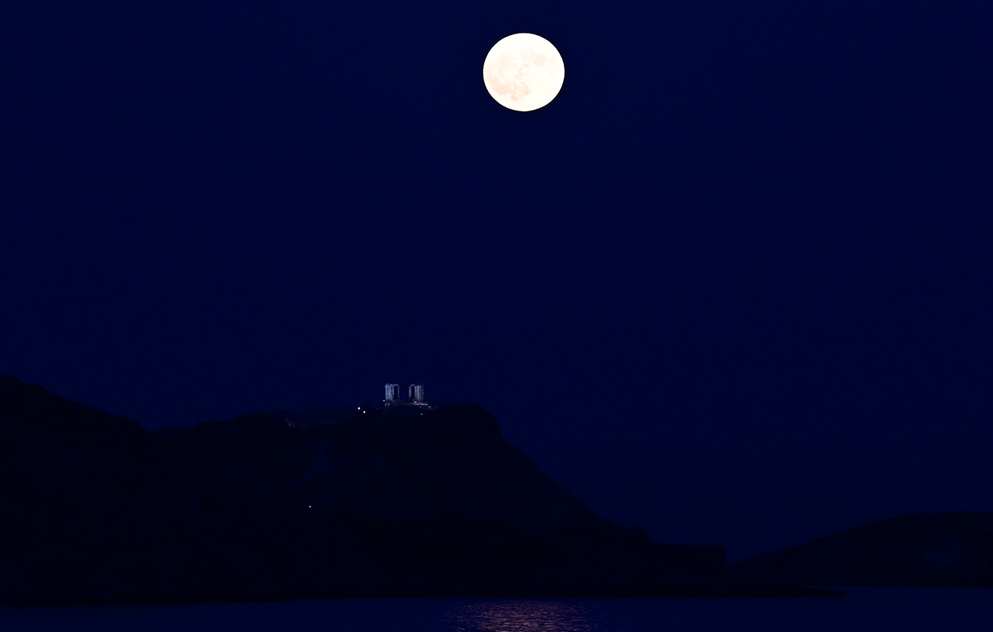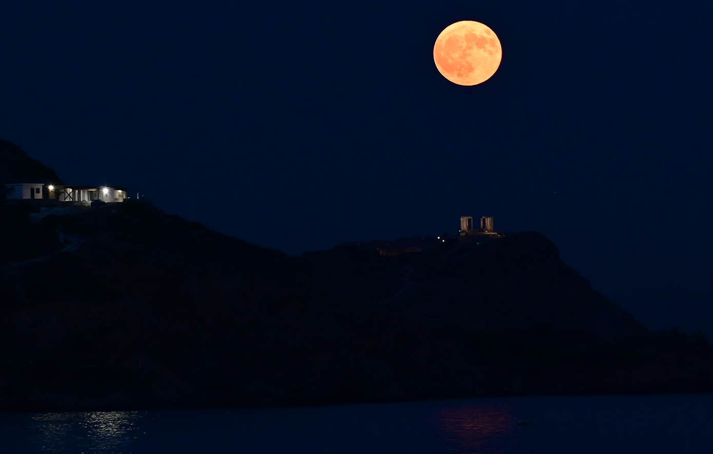 Το «φεγγάρι του Οξύρρυγχου», όπως ονομάζεται αλλιώς η σημερινή πανσέληνος, φώτισε τον ουρανό και οι εικόνες από το Σούνιο και τον ναό του Ποσειδώνα αλλά και τον Υμηττό και το Ναύπλιο είναι πραγματικά εντυπωσιακές.