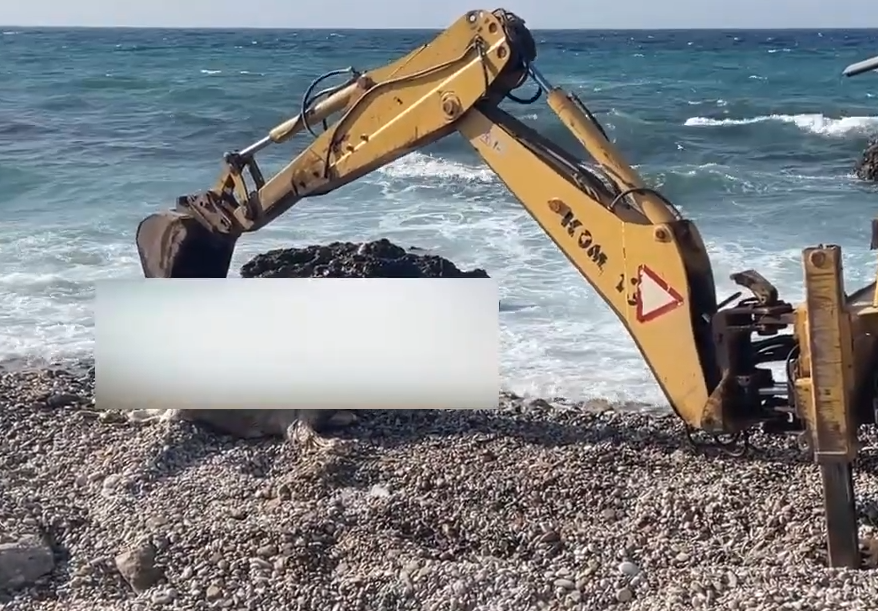 Αμέσως ειδοποιήθηκε το λιμενικό, σκαπτικό μηχάνημα και φορτηγό, προκειμένου να την απομακρύνουν από την ακτή και να προχωρήσουν σε υγειονομική ταφή.