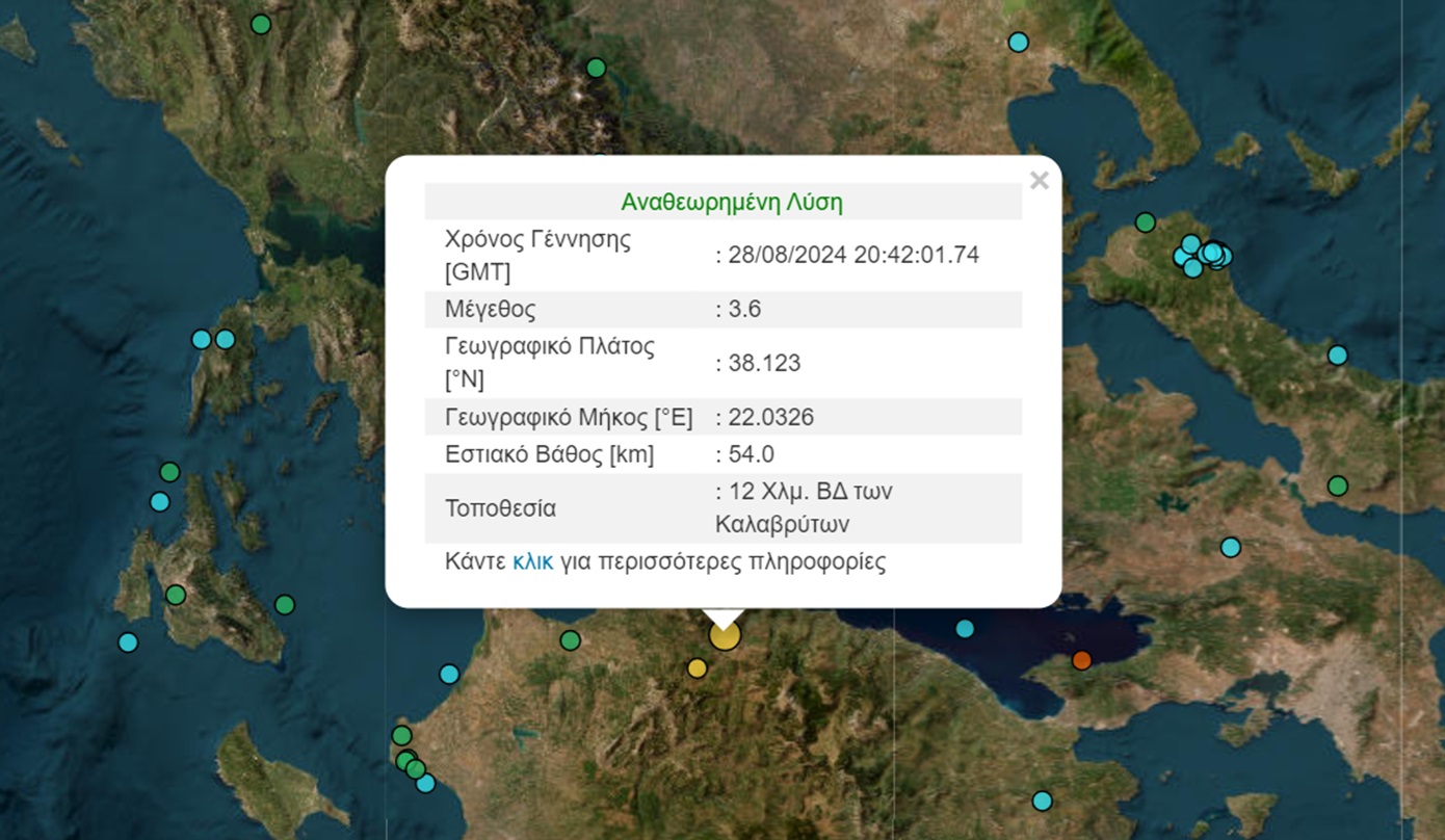 Σεισμική δόνηση έγινε αισθητή το βράδυ της Τετάρτης 28/08, περίπου στις 11:45, σε περιοχές της Αχαΐας.