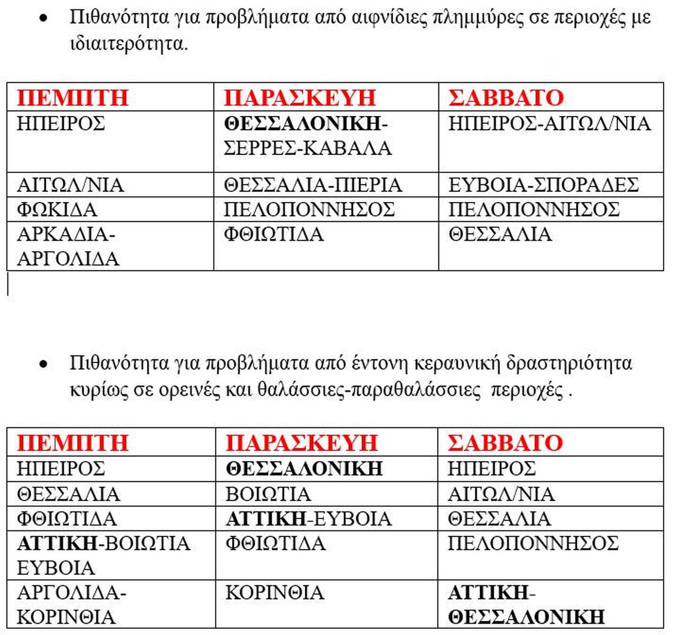 «Δυνητικά στις παρακάτω περιοχές μπορεί να προκληθούν προβλήματα και με μπουρίνια και με τοπικές χαλαζοπτώσεις.