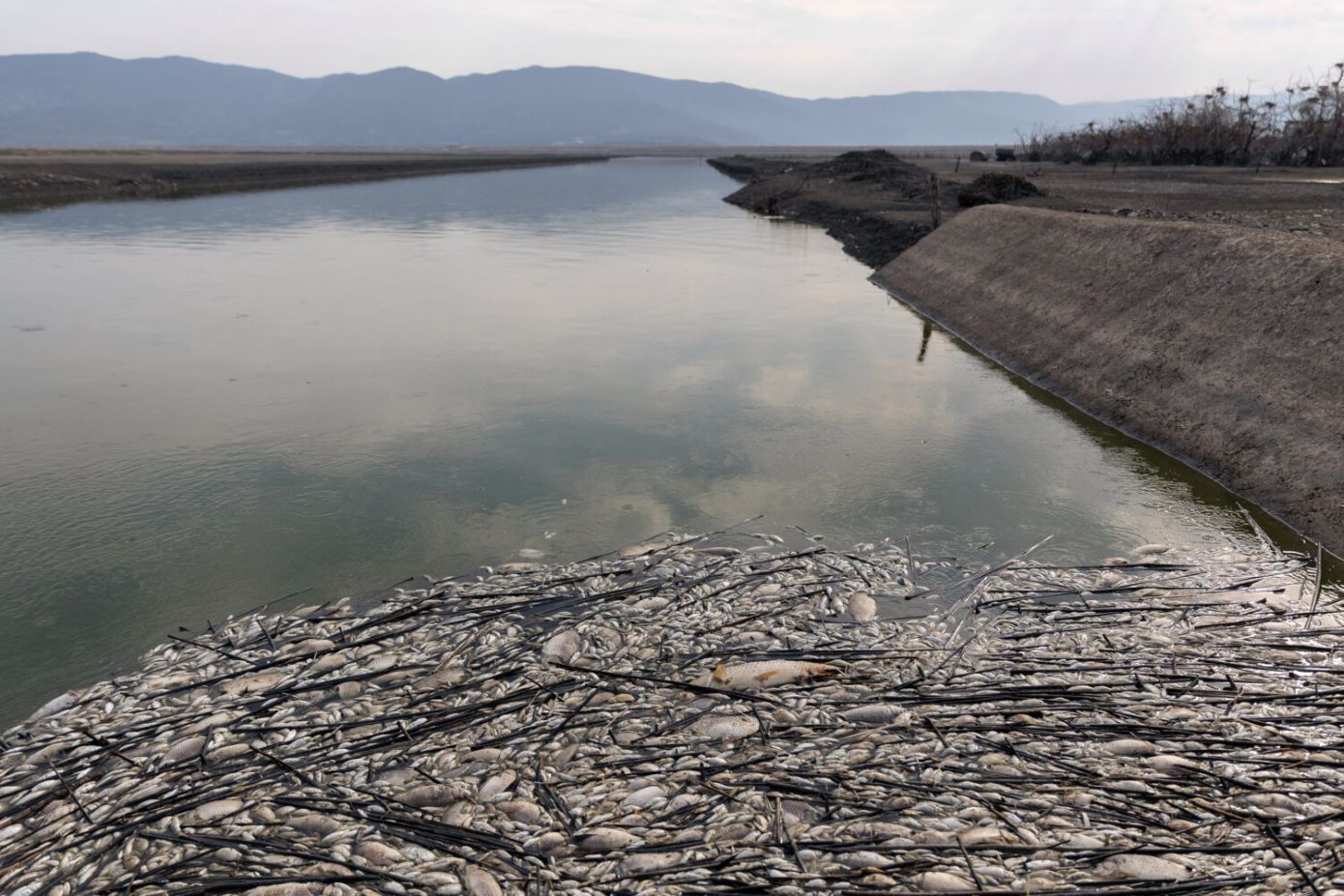 Κι ενώ για καιρό η λίμνη Κάρλα ήταν θέμα λόγω του μεγέθους της από τις πλημμύρες, τώρα το «βίαιο» άδειασμά της αποκάλυψε αρκετά νεκρά ψάρια και ένα νέο τοπίο καταστροφής.