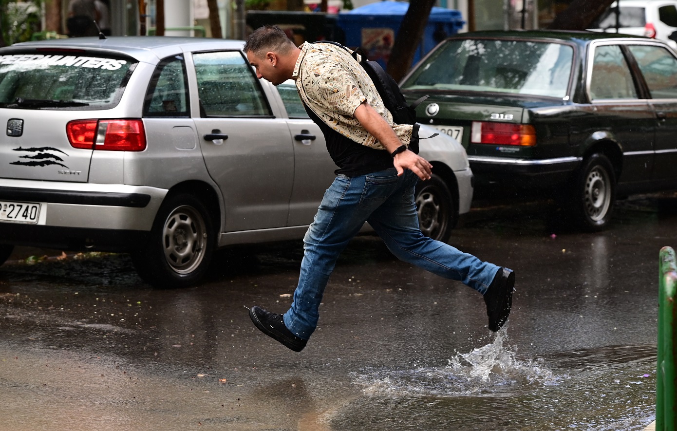 Σε ποτάμια μετατράπηκαν οι δρόμοι ακόμα και στο κέντρο της Αθήνας από το πέρασμα της κακοκαιρίας «Atena».