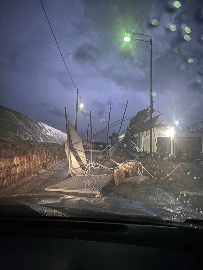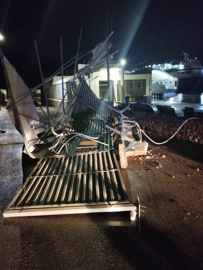 Χαρακτηριστικές είναι οι εικόνες από την περιοχή του Βόρειου Λιμενοβραχίονα στη Χίο, εκεί όπου, σύμφωνα με μαρτυρίες, ανεμοστρόβιλος «ξήλωσε» τη νέα περίφραξη του Τελωνείου της Χίου, προκαλώντας σημαντικές ζημιές, όπως μεταδίδει το politischios.